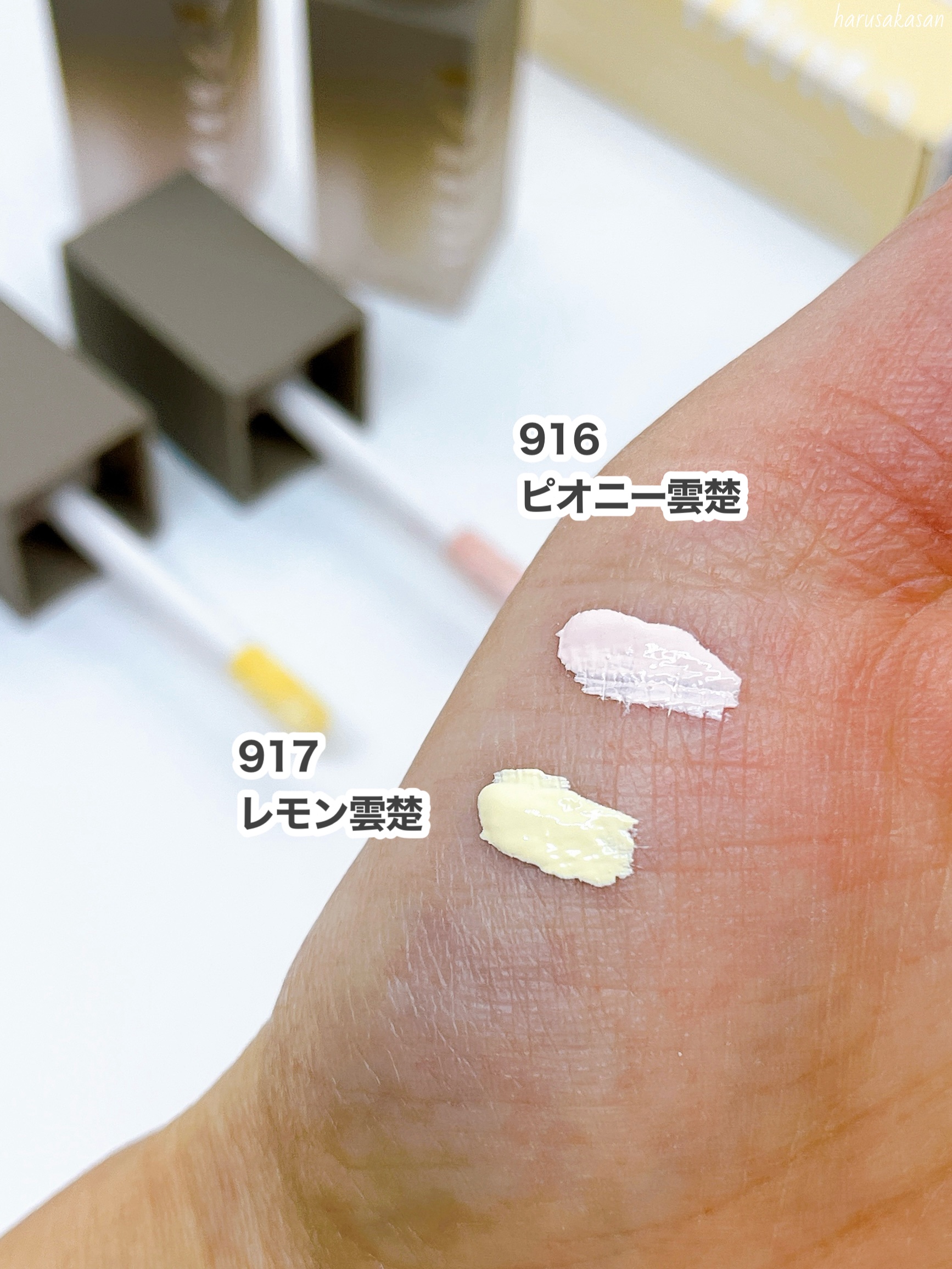 Dinto☁️⸝⸝꙳ライトベールカラーコレクター916ピオニー雲楚🌸917レモン雲楚🍋・みずみずしいテクスチャ・少量でも伸びが良い・微細粒子でムラなく密着して持ちがよい・厚塗り感がない916ピオニー雲楚🌸・くすみをピンクの補色で自然にトーンア...