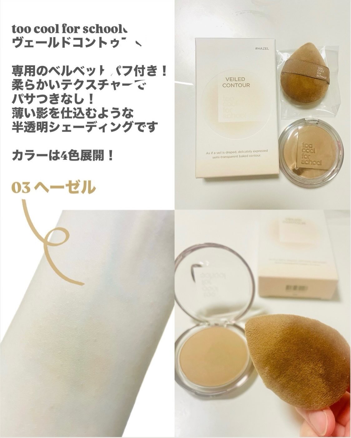 \新作シェーディングが登場✨@toocoolforschool_official_jp𖧷ヴェールドコントゥアヘーゼル“CONTEMPORARYARTCOSMETICS”をテーマに、ジャンルやコンセプトに捉われないアイテムを展開する、韓国発のビ...
