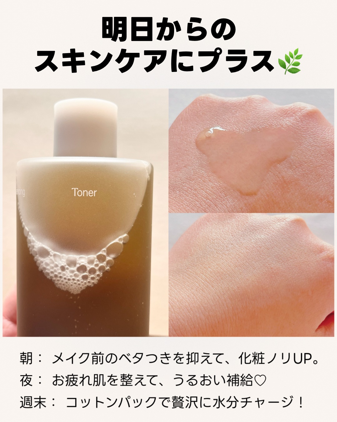 - 肌の水分と油分のバランスを補い、軽い使用感のトナー