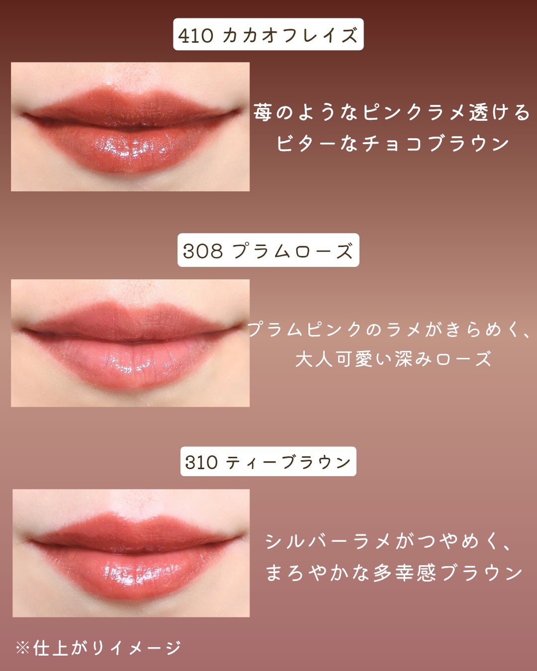 .オペラのティントのバレンタイン限定色410カカオフレイズはピンクラメが入ったチョコレートブラウン🍫🍓フリーズドライのいちごが散りばめられたチョコみたいでかわいすぎませんか…!オペラのリップってかわいらしい感じの色が多いイメージだったけどこれ...