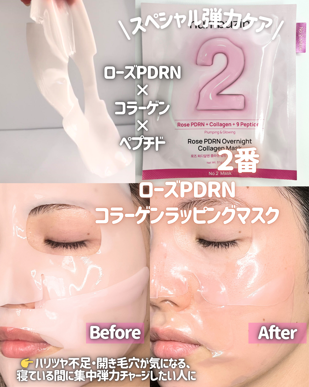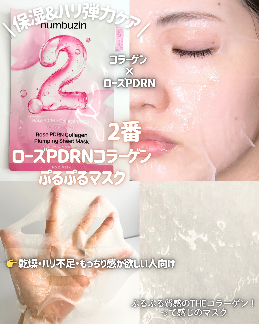 \\全種類比較//ナンバーズインの大人気アイテム!お肌の悩みに合わせて選べる全7種類のシートマスクをレビューします〜🫶★ヒアルロニックパンテトン酸ガーゼマスク★ローズPDRNコラーゲンぷるぷるマスクローズ★ローズPDRNコラーゲンラッピングマ...