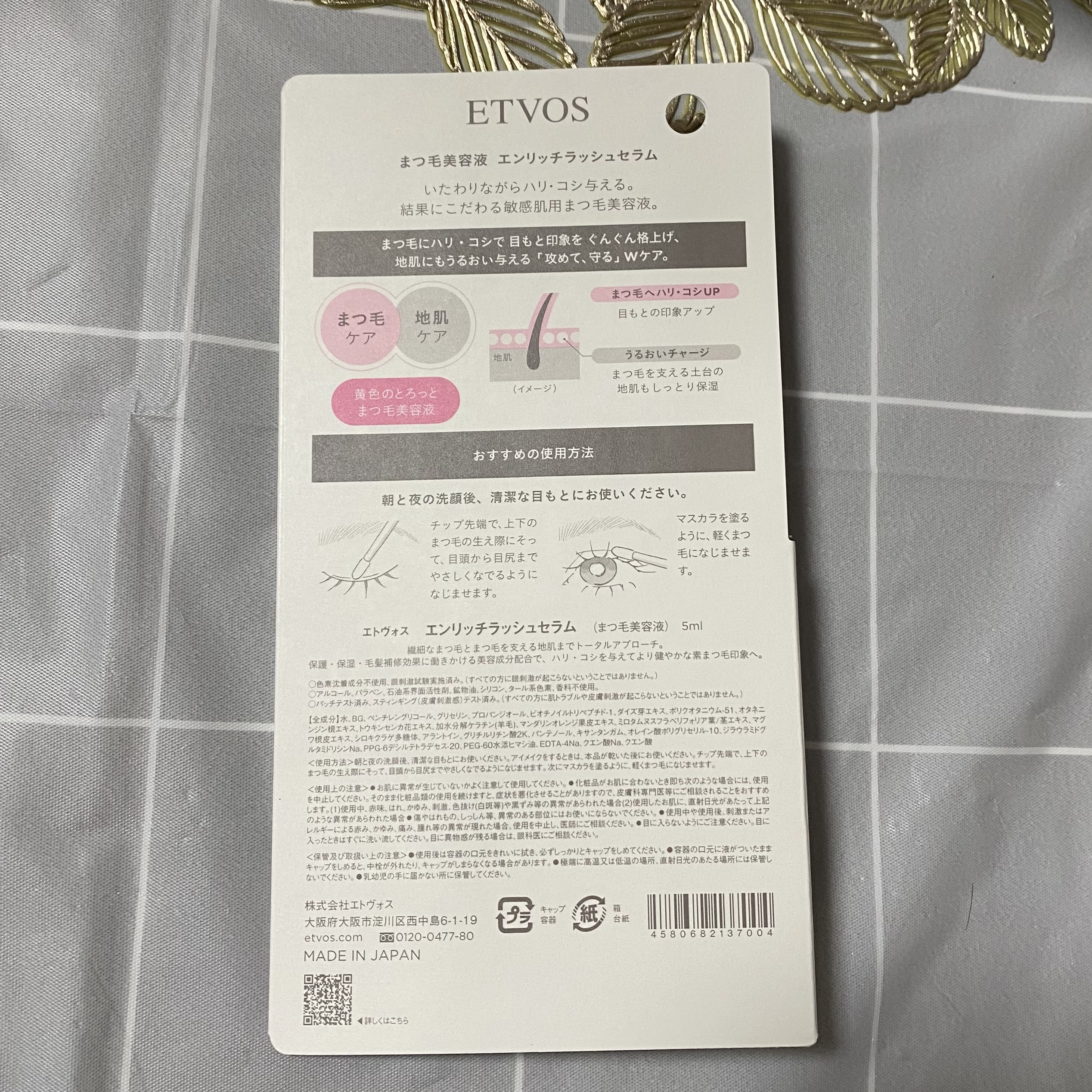 ETVOS エンリッチラッシュセラムETVOSから敏感肌用まつ毛美容液が誕生💫繊細なまつ毛やデリケートな地肌をやさしくケアしながら目もと印象をぐんぐん格上げしてくれるのだそう👀✨ほどよい粘度の美容液でまつ毛にぴたっと密着。液だれせず塗りやすい...
