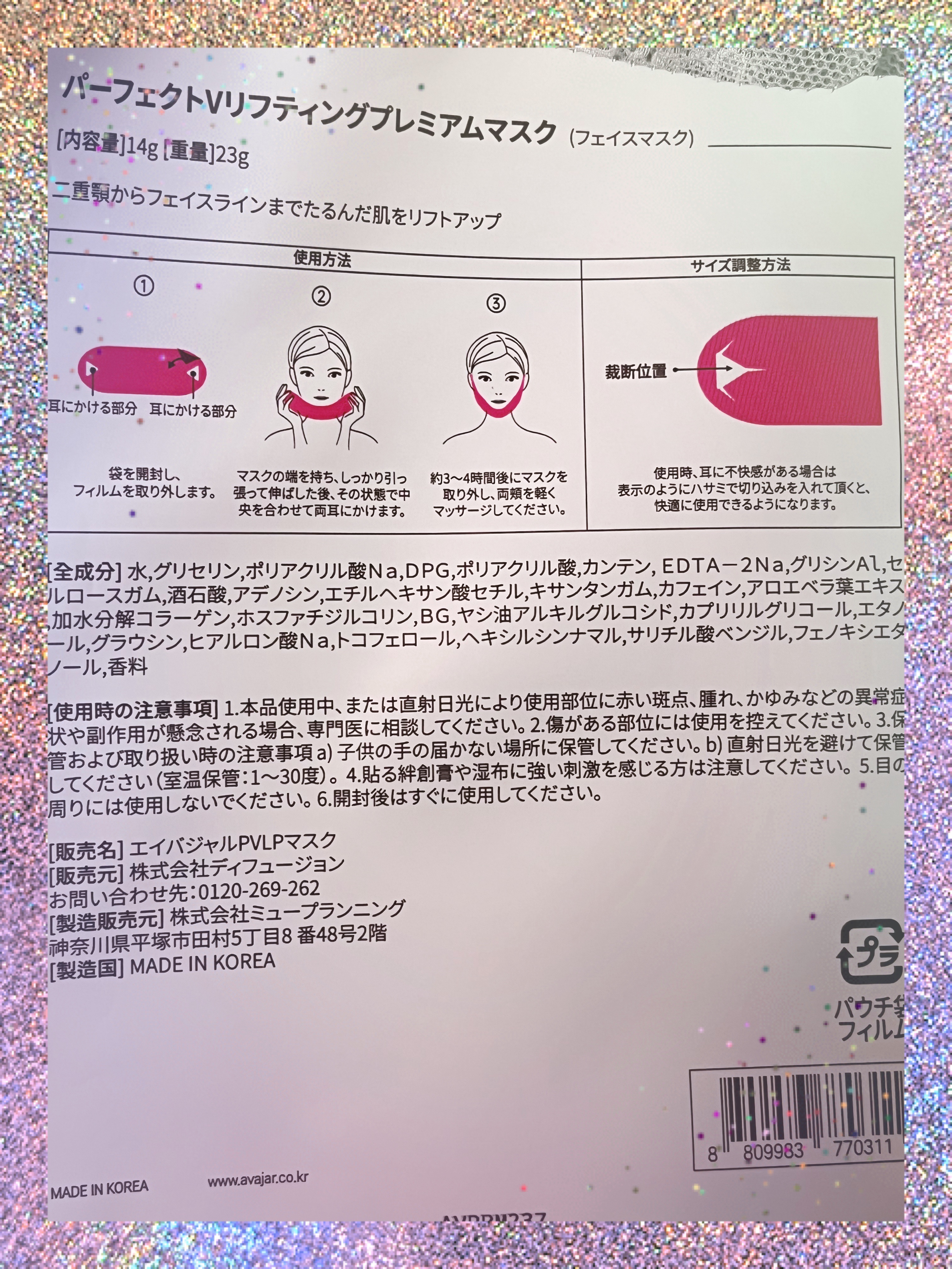 AvajarのパーフェクトVリフティングプレミアムマスクを紹介💁🏼♀️フェイスラインをグッと引き上げ弾力を与える小顔マスクしっかり密着する潤いのハイドロゲルヒドロライズドコラーゲンとアデノシン配合乾燥してかさついたお肌に水分をたっぷり補給ク...