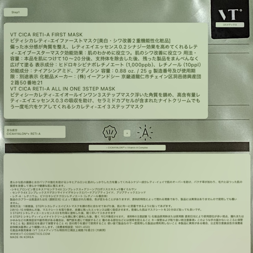 商品詳細情報VT シカ レチA オールインワン 3ステップ マスク (1EA)