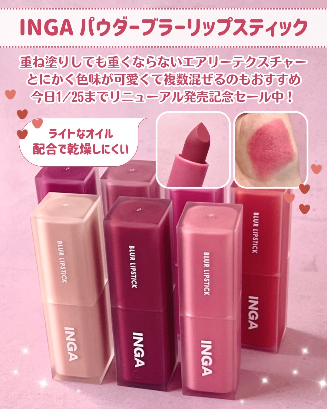 #PR@officialINGA_jp様よりパウダーブラーリップスティックブラッディワイン&モーヴライラックを頂きました💄✨マットタイプですが、個人的には乾燥しにくく感じて、発色もとても良くて本当に可愛い…♡使うたびにテンションが上がるリップ...