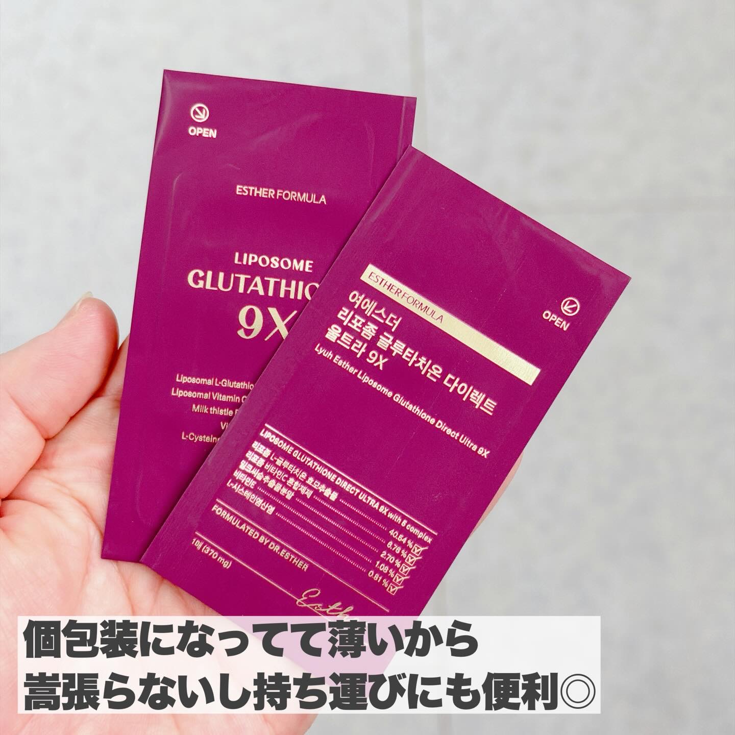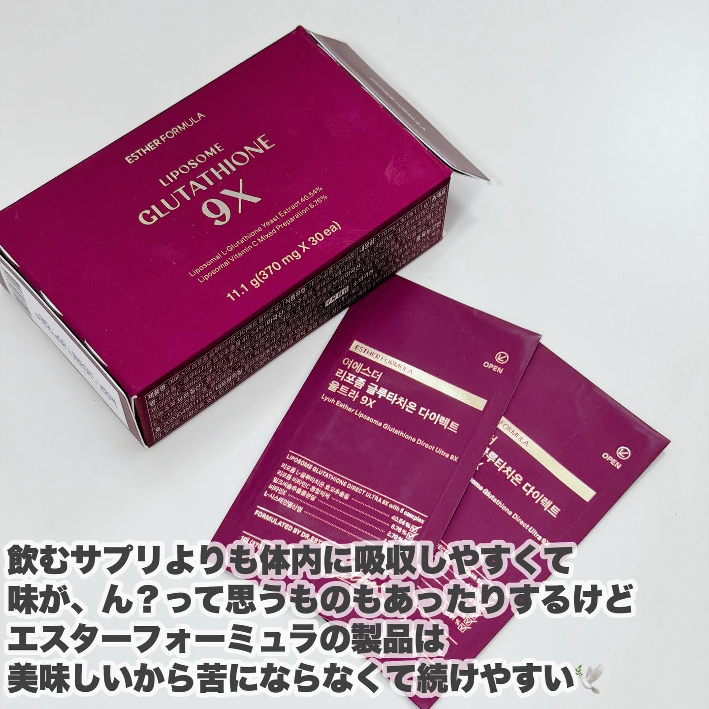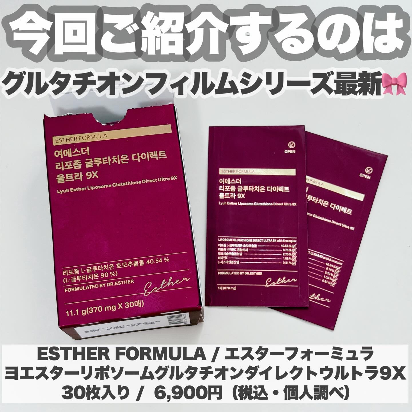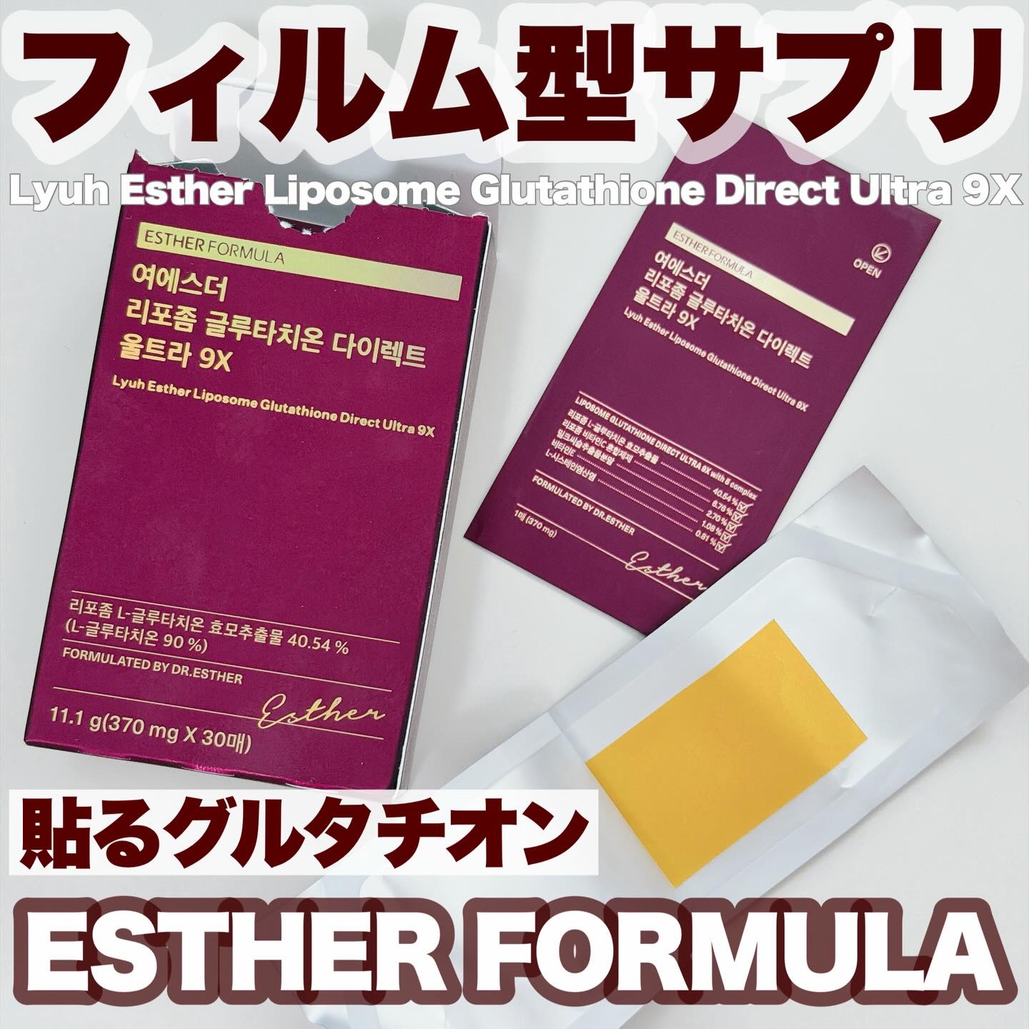 グルタチオンフィルムシリーズ最新!本日のメモ✍️ESTHERFORMULA♡ヨエスターリポソームグルタチオンダイレクトウルトラ9X♡まだ進化しちゃうのか!?グルタチオンフィルムに最新作でました♡最初のグルタチオンフィルムと比較すると、なんとグ...