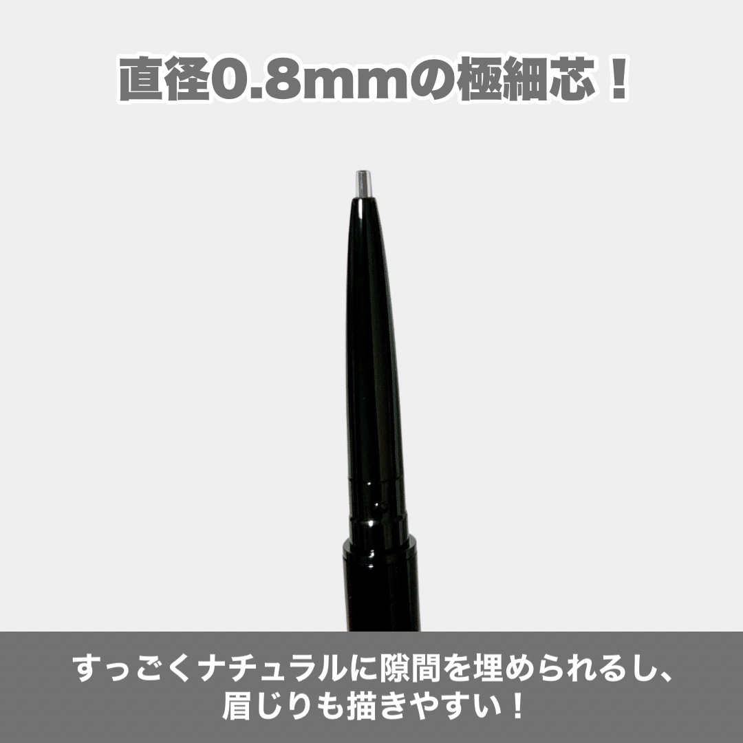 - まるでシャーペンで描くようなリアルな毛流れ眉が完成。 折れにくい 0.8mmの超極細芯。 #眉シャーペン ●直径0.8mmの極細芯により、眉尻の細かい部分や隙間埋めなど眉の一本一本まで繊細リアルに描ける ●上下に動く保護パイプつきだから、超極細芯でも折れにくい! ●汗・水、皮脂・こすれに強く、描いた眉をきれいにキープ