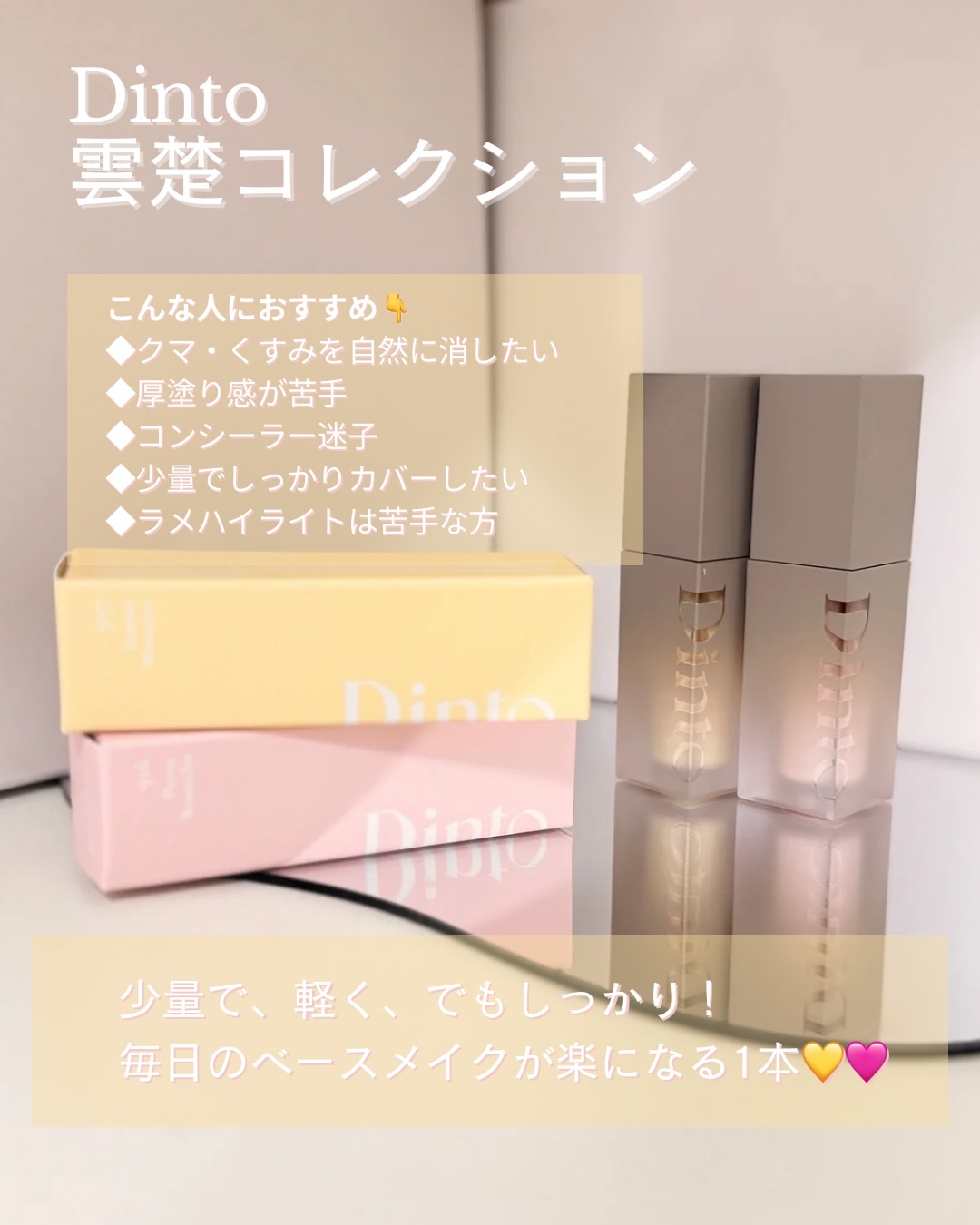 \コンシーラー迷子さん集合/「流行は一瞬、クラシックは永遠」この言葉がぴったりすぎた、Dintoの新作🕊️雲楚コレクションライトベールカラーコレクター🩷916ピオニー雲楚💛917レモン雲楚正直に言うと…最初、出しすぎました😂それくらい少量で仕...