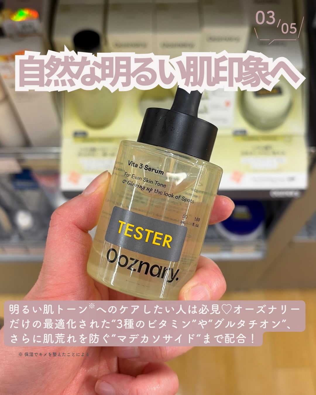 【今話題のビタ3セラム💛✨】Ooznaryって知ってる?👀🍋最近くすみが気になってビタミンケアを色々試しているんだけど、その中でもお気に入りがこれ!軽やかなテクスチャーと優しい使い心地で、毎日使いにぴったりなの🫶🏻PLAZA・LOFTなどの日...