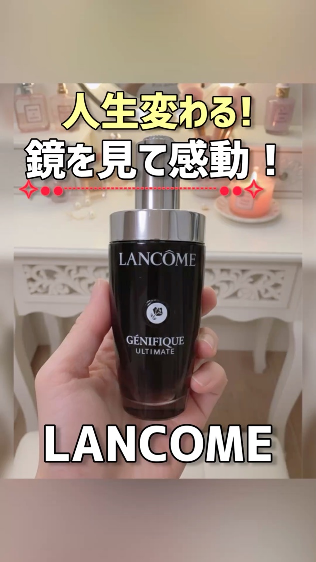 ランコム様からいただきました❣️LANCOMEジェニフィックアルティメセラムパッケージに高級感を感じられます。洗顔後の肌、化粧水の前に使用。自動吸い上げ式のスポイトで1回分が写真の量です。香りはほんのりフローラルローズとシトラス香りがします。...