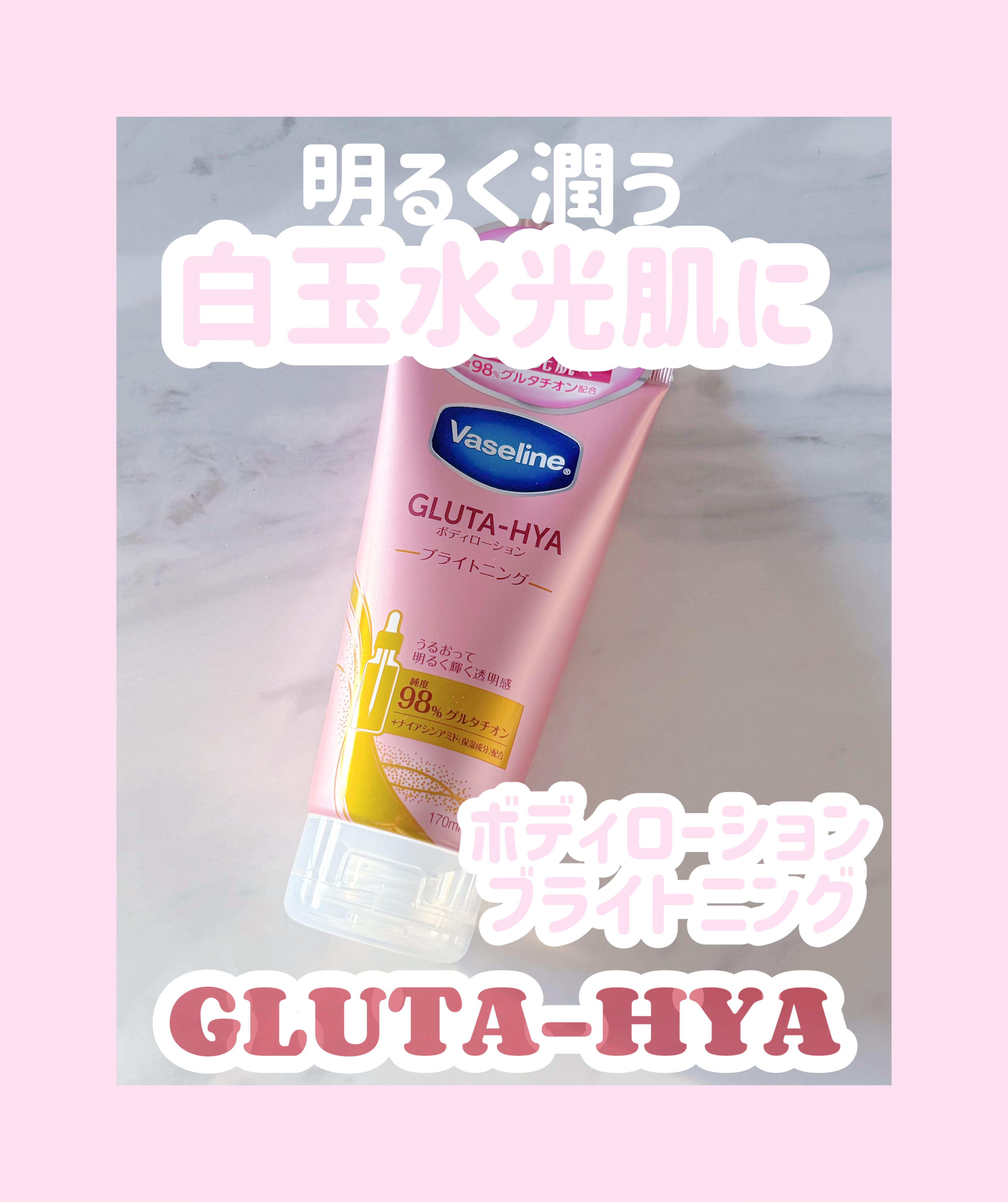 ヴァセリンGLUTA-HYA(グルタヒア)ボディローション ブライトニング海外の方ではすでに発売されてたみたいですね。日本では2月に発売予定。グルタチオン、ヒアルロン酸、ナイアシンアミドなど、こだわりの保湿成分配合。うるおって明るく輝...