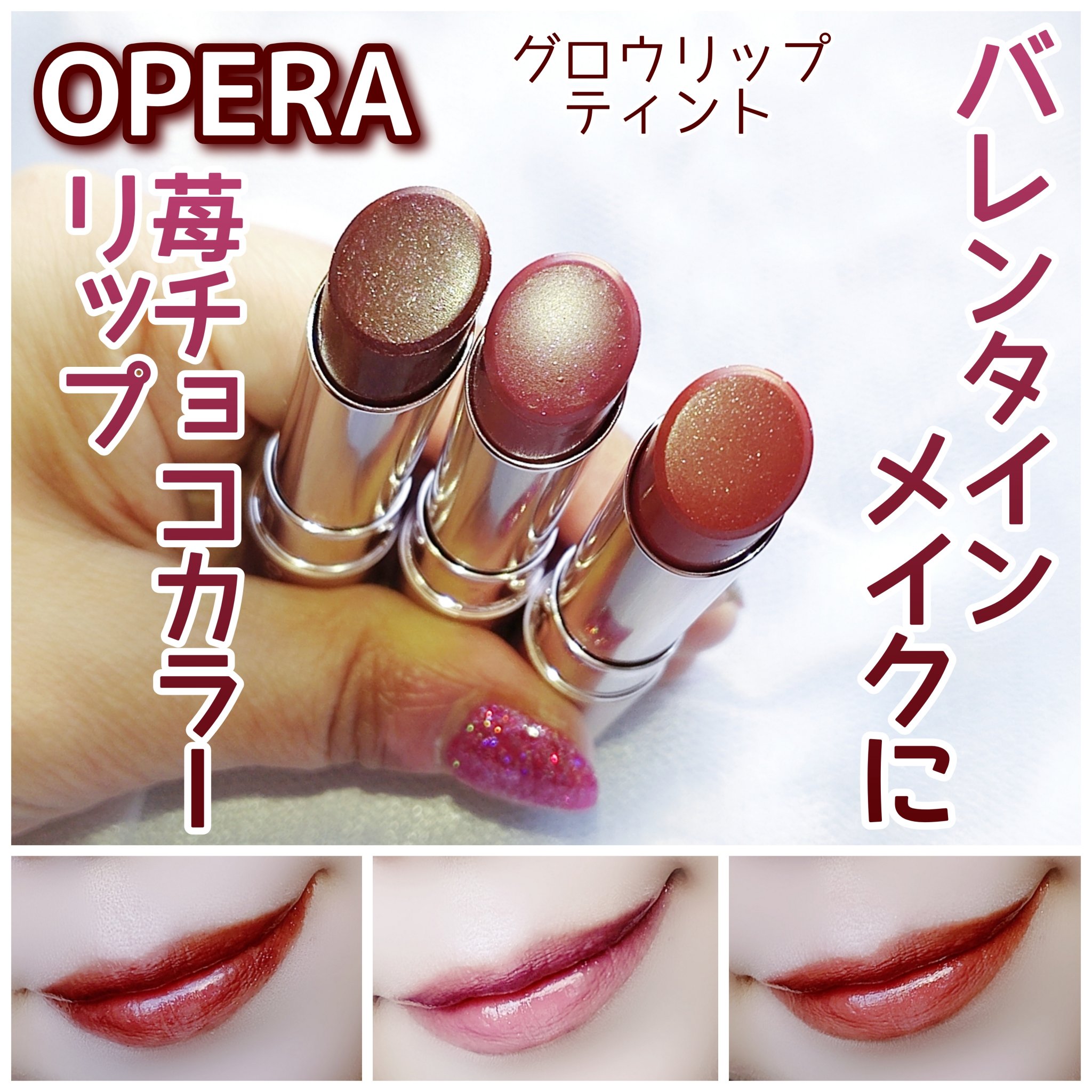 .オペラのティントのバレンタイン限定色410カカオフレイズはピンクラメが入ったチョコレートブラウン🍫🍓フリーズドライのいちごが散りばめられたチョコみたいでかわいすぎませんか…!オペラのリップってかわいらしい感じの色が多いイメージだったけどこれ...