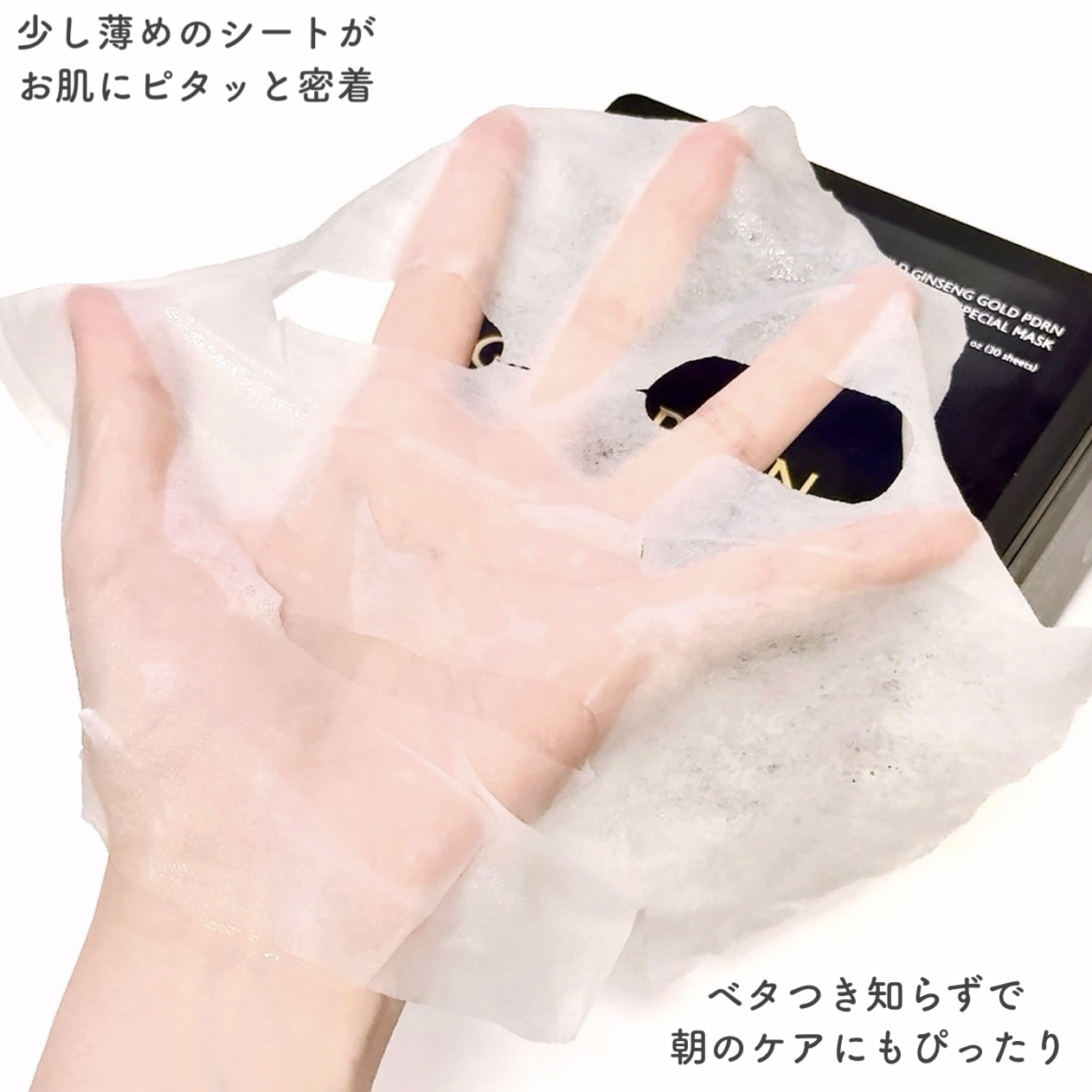 高麗人参の栄養を濃縮した植物生PDRN❗️ 高麗人参ゴールドPDRN‼️ PDRNと13種類のペプチド配合でパワフルなエイジングケアを目指します🙄‼️ 薄くきめ細かい密着テンセルシート。本当に薄ーいシートですがちゃんと密着してくれます☺️
