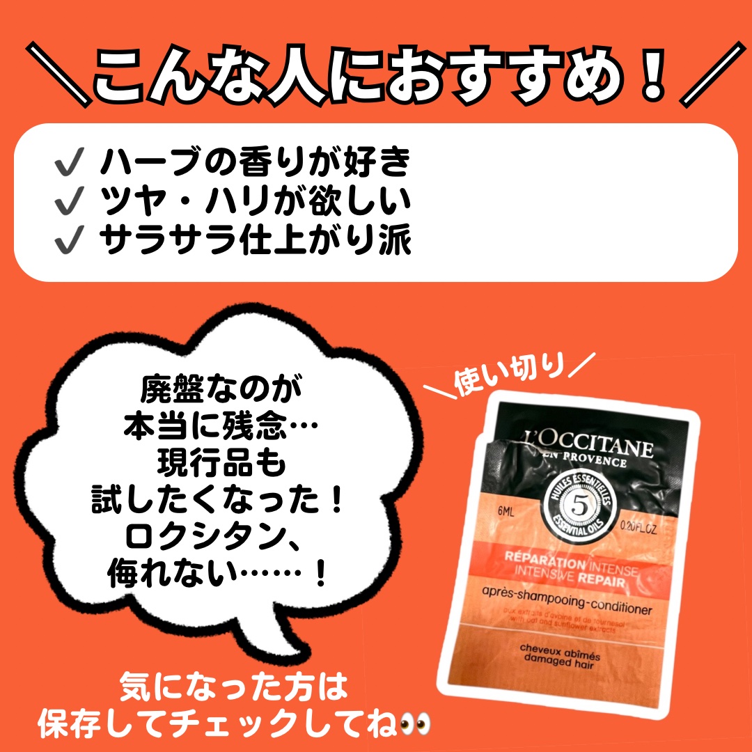 | コンディショナー単品ランキング第4位 | さらっとめのテクスチャーなので髪なじみもいいし、流す時も体についても洗い流しやすくて良し | 詳細を見る | |