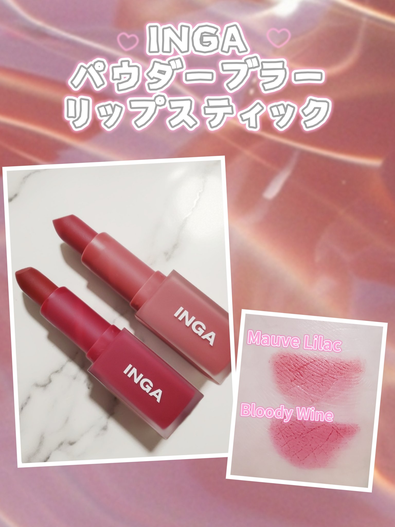 INGA インガ♡パウダーブラーリップスティックひと塗りで高級感のある鮮やかな発色で重ね塗りしても重くならないエアリーマットなテクスチャー唇の縦ジワも目立たなくし乾燥しないしっとりとした塗り心地でなめらかな唇に演出✨今回使用したカラーは💄Ma...