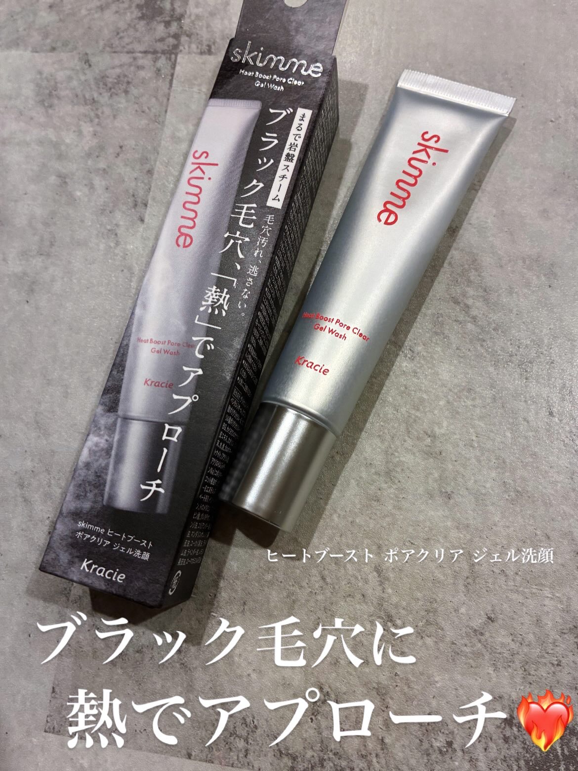 skimmeヒートブースト ポアクリア ジェル洗顔ブラックヘッド(毛穴)に熱でアプローチ!まるで岩盤スチームをしたような肌体験♡毛穴用ジェル洗顔粘りのあるテクスチャの黒いジェル。週1、2回がおすすめ。洗顔後に毛穴が気になる鼻や顎などをくるくる...