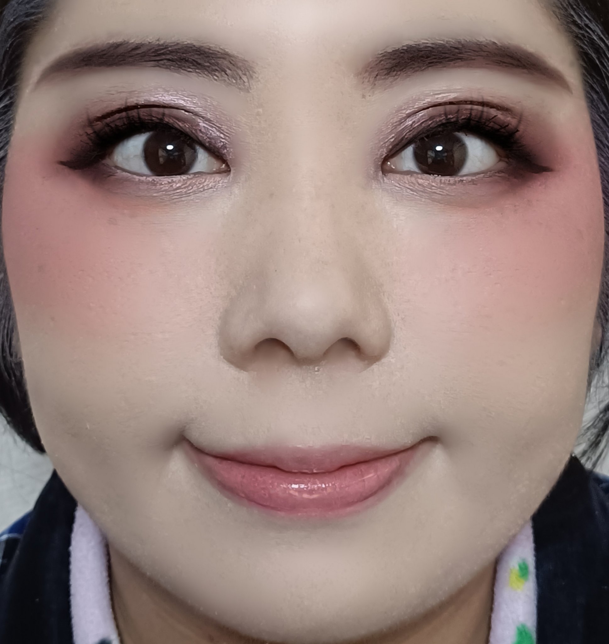アイシャドウパレットは、UR GLAM アイシャドウパレットを、使用しました。 リップは、M・A・C リップスティック ピーチストックを、唇全体にまんべんなく塗ります。