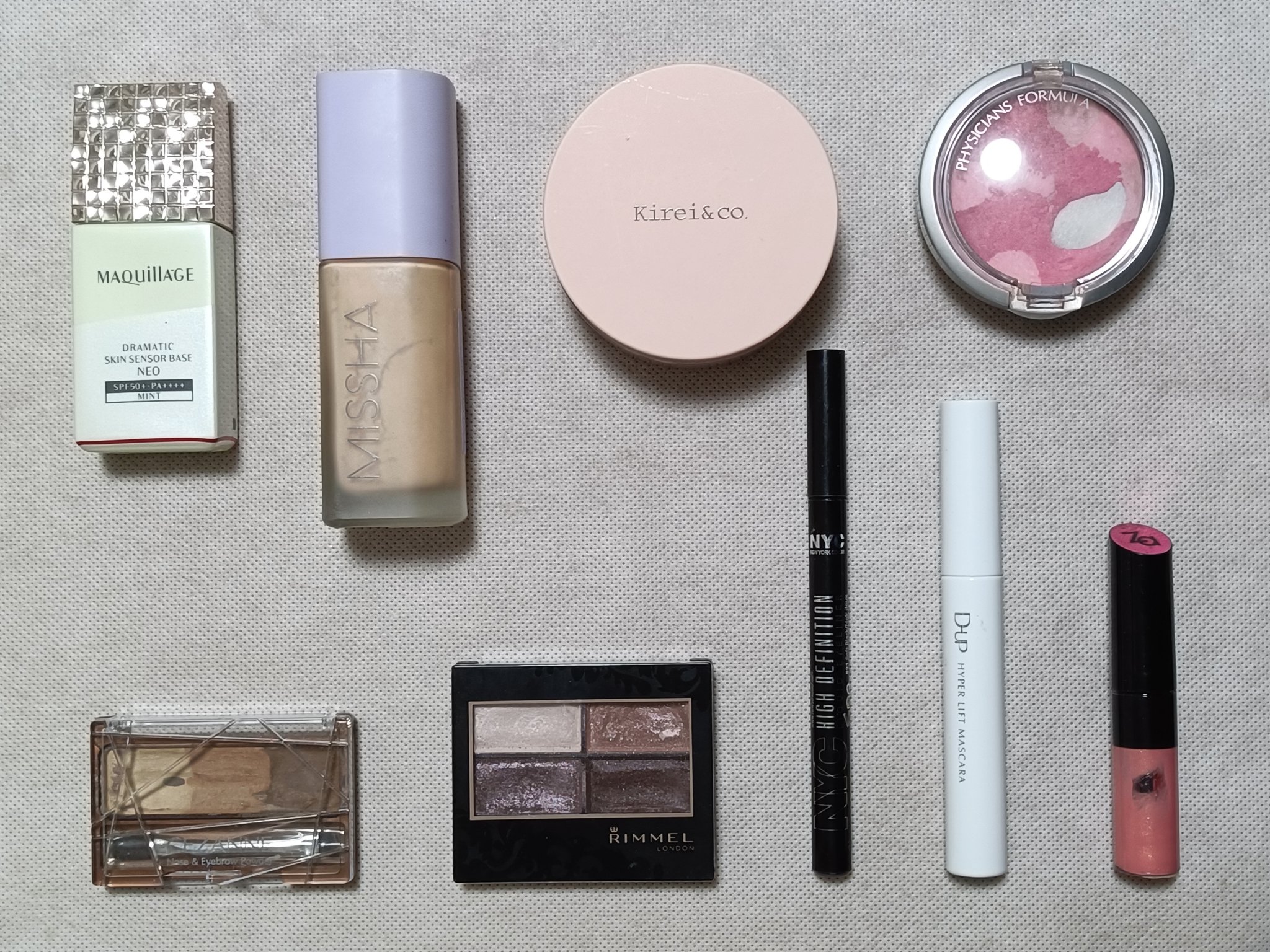 アリィー ニュアンスチェンジUV ジェル RSを、顔全体にまんべんなく塗ります。 RMK RMK ジェルクリーミィファンデーション 103を、顔全体にまんべんなく塗ります。 ジョンソンベビー ジョンソン ベビーパウダーを、顔全体にまんべんなく軽くはたきます。 THE BODY SHOP bronze shade warm glowを、両頬に塗ります。 KATE リフレクトミラーアイズ BR-1の締め色を、眉毛全体にまんべんなく塗ります。 URGLAM UR GLAMBLOOMING EYE COLOR PALETTE 01を、使用しました。 ちふれ リキッド アイライナー 筆ペンタイプ BK30 ブラックを、塗ります。 CEZANNE エアリーカールマスカラを、まつ毛全体にまんべんなく塗ります。 MAYBELLINE NEW YORK コロッサルボリュームエクスプレスを、まつ毛全体にまんべんなく塗ります。 MAYBELLINE NEW YORK SPステイ マットインク 135を、唇全体にまんべんなく塗ります。
