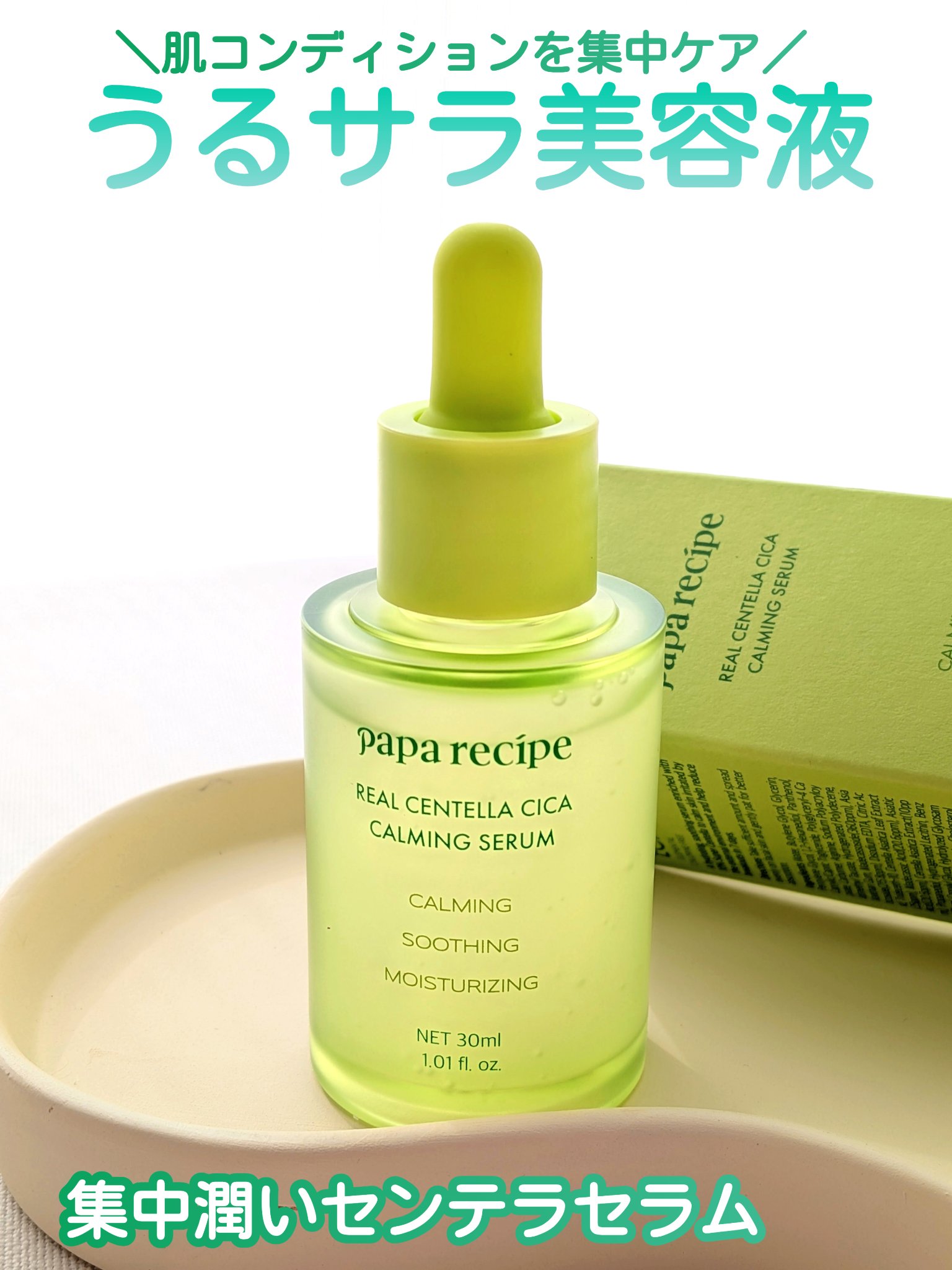 PAPARECIPEパパレシピ♡リアルセンテラシカカーミングセラム(30ml)刺激を受けた肌を素早く水分チャージ敏感になった肌を落ちつかせて弱った肌バリアを健やかにケア肌の表面と内側を潤いで満たしてくれます✨✾センテラ抽出物10%高配合✾D-...
