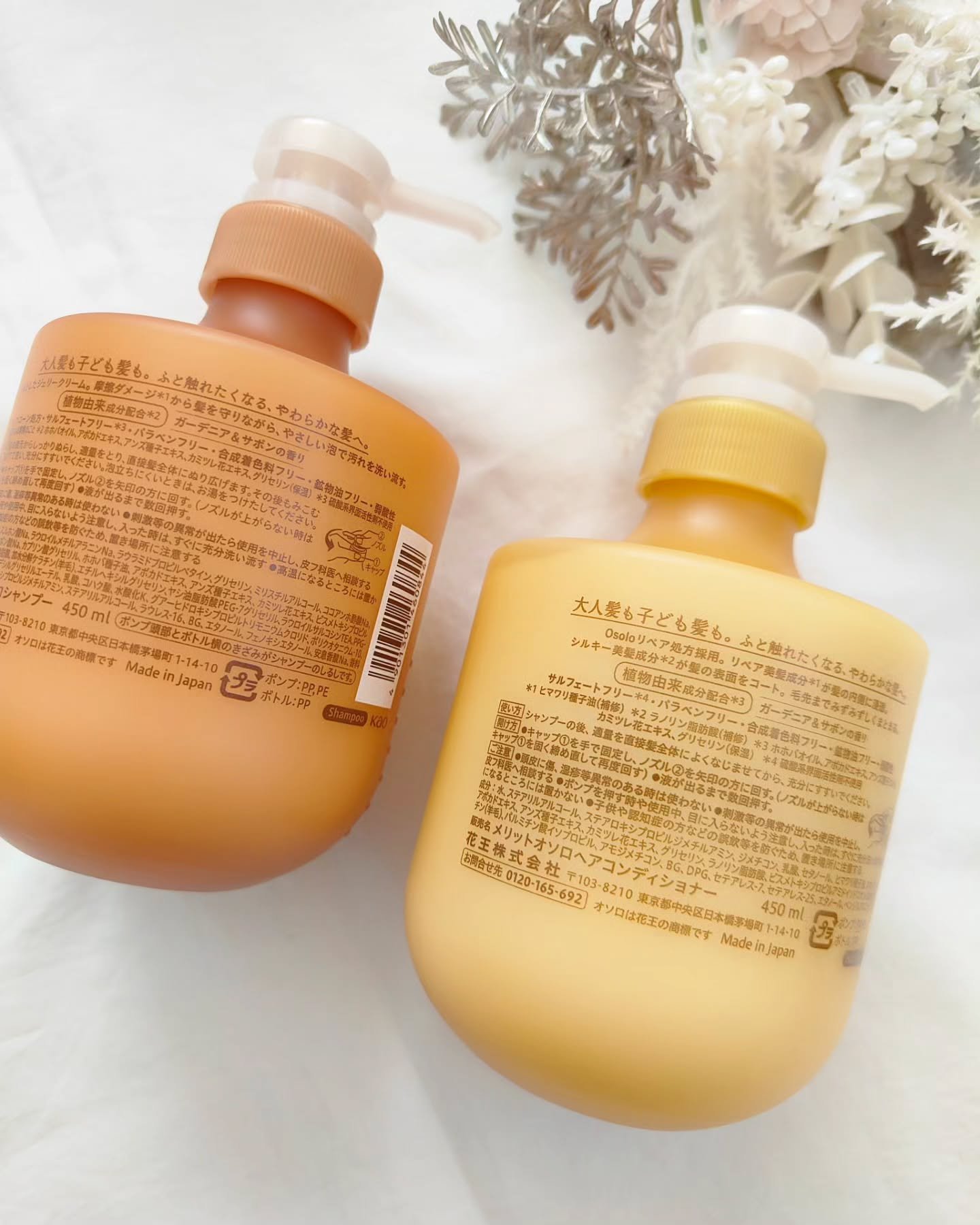- 〈シャンプー〉 パサつく大人髪も、繊細な子ども髪も。ふと触れたくなる、やわらかな髪へ。 ぷるんとしたジェリークリーム。 摩擦ダメージ*6から髪を守りながら、やさしい泡で汚れを洗い流す。 ● 植物由来成分配合*4 ● 自然由来指数90%(水を含む) ISO16128準拠 ● サルフェートフリー*5/パラベンフリー/合成着色料フリー/鉱物油フリー/弱酸性 ● ノンシリコーン処方 ● 何でもない日に気分ときめく ガーデニア&サボンの香り *4 ホホバオイル、アボカドエキス、アンズ種子エキス、カミツレ花エキス、グリセリン(保湿) *5 硫酸系界面活性剤不使用 *6 洗髪による摩擦のこと 〈コンディショナー〉 パサつく大人髪も、繊細な子ども髪も。ふと触れたくなる、やわらかな髪へ。 Osoloリペア処方採用。リペア美髪成分*2が髪の内側に浸透。 シルキー美髪成分*3が髪の表面をコート。毛先までみずみずしくまとまる。 ● 植物由来成分配合*4 ● 自然由来指数90%(水を含む) ISO16128準拠 ● サルフェートフリー*5/パラベンフリー/合成着色料フリー/鉱物油フリー/弱酸性 ● 何でもない日に気分ときめく ガーデニア&サボンの香り *2 ヒマワリ種子油(補修) *3 ラノリン脂肪酸(補修) *4 ホホバオイル、アボカドエキス、アンズ種子エキス、カミツレ花エキス、グリセリン(保湿) *5 硫酸系界面活性剤不使用
