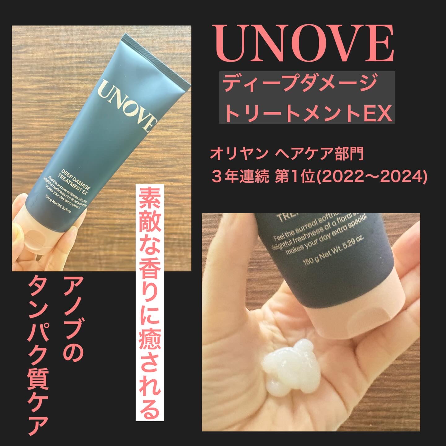 UNOVEさまからいただきました!UNOVEディープダメージトリートメントEX繰り返したカラーでバサバサだった毛先に...UNOVEディープダメージトリートメントEXを使ってみたら、もう感動🥹✨とろ〜っと?ねっとり?濃厚なクリームのよ...