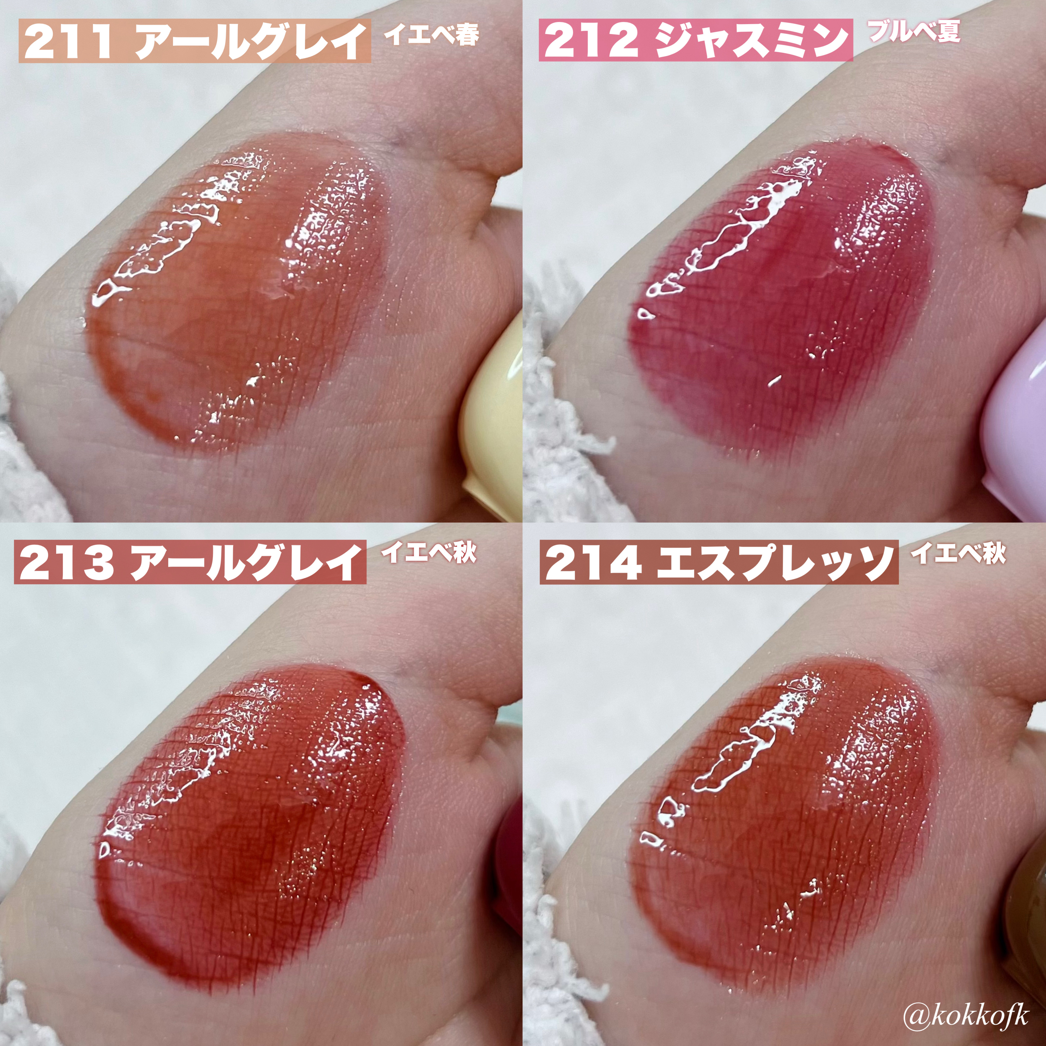 - <201 フェアリー> ダイマージリノール酸ジイソステアリル、ジフェニルシロキシフェニルトリメチコン、ビスジグリセリルポリアシルアジペート-2、水、ジフェニルジメチコン、水添ポリイソブテン、セチルPEG/PPG-10/1ジメチコン、ポリソルベート60、ペンチレングリコール、グリセリン、イソステアリン酸ポリグリセリル-4、フェノキシエタノール、1,2-ヘキサンジオール、セテアレス-20、酸化チタン (CI 77891)、(アクリル酸ヒドロキシエチル/アクリロイルジメチルタウリンNa)コポリマー、ステビオシド、スクワラン、香料、ジラウラミドグルタミドリシンNa、エチルヘキシルグリセリン、エチレンジアミンジコハク酸3Na、赤色227号 (CI 17200)、水酸化Al、黄色5号 (CI 15985)、ポリアクリル酸アンモニウム、イソステアリン酸ソルビタン、黄色4号 (CI 19140)、BG、赤色223号 (CI 45410)、青色1号 (CI 42090)、アラントイン、パンテノール、ツボクサエキス、ヒアルロン酸、加水分解ヒアルロン酸、ヒアルロン酸Na <203 バブリー> ダイマージリノール酸ジイソステアリル、ジフェニルシロキシフェニルトリメチコン、ビスジグリセリルポリアシルアジペート-2、水、ジフェニルジメチコン、水添ポリイソブテン、セチルPEG/PPG-10/1ジメチコン、ポリソルベート60、ペンチレングリコール、グリセリン、イソステアリン酸ポリグリセリル-4、フェノキシエタノール、1,2-ヘキサンジオール、セテアレス-20、(アクリル酸ヒドロキシエチル/アクリロイルジメチルタウリンNa)コポリマー、ステビオシド、酸化チタン (CI 77891)、スクワラン、香料、ジラウラミドグルタミドリシンNa、エチルヘキシルグリセリン、赤色227号 (CI 17200)、エチレンジアミンジコハク酸3Na、黄色5号 (CI 15985)、イソステアリン酸ソルビタン、水酸化Al、ポリアクリル酸アンモニウム、黄色4号 (CI 19140)、BG、青色1号 (CI 42090)、アラントイン、パンテノール、ツボクサエキス、ヒアルロン酸、加水分解ヒアルロン酸、ヒアルロン酸Na <204 レア> ダイマージリノール酸ジイソステアリル、ジフェニルシロキシフェニルトリメチコン、ビスジグリセリルポリアシルアジペート-2、水、ジフェニルジメチコン、水添ポリイソブテン、セチルPEG/PPG-10/1ジメチコン、ポリソルベート60、ペンチレングリコール、グリセリン、イソステアリン酸ポリグリセリル-4、フェノキシエタノール、1,2-ヘキサンジオール、セテアレス-20、(アクリル酸ヒドロキシエチル/アクリロイルジメチルタウリンNa)コポリマー、酸化チタン (CI 77891)、ステビオシド、スクワラン、香料、ジラウラミドグルタミドリシンNa、エチルヘキシルグリセリン、赤色227号 (CI 17200)、黄色5号 (CI 15985)、エチレンジアミンジコハク酸3Na、イソステアリン酸ソルビタン、水酸化Al、ポリアクリル酸アンモニウム、黄色4号 (CI 19140)、青色1号 (CI 42090)、BG、アラントイン、パンテノール、ツボクサエキス、ヒアルロン酸、加水分解ヒアルロン酸、ヒアルロン酸Na <205 ハニーデュー> ダイマージリノール酸ジイソステアリル、ジフェニルシロキシフェニルトリメチコン、ビスジグリセリルポリアシルアジペート-2、水、ジフェニルジメチコン、水添ポリイソブテン、セチルPEG/PPG-10/1ジメチコン、ポリソルベート60、ペンチレングリコール、グリセリン、イソステアリン酸ポリグリセリル-4、フェノキシエタノール、1,2-ヘキサンジオール、セテアレス-20、(アクリル酸ヒドロキシエチル/アクリロイルジメチルタウリンNa)コポリマー、酸化チタン (CI 77891)、ステビオシド、スクワラン、香料、ジラウラミドグルタミドリシンNa、エチルヘキシルグリセリン、赤色227号 (CI 17200)、黄色5号 (CI 15985)、エチレンジアミンジコハク酸3Na、イソステアリン酸ソルビタン、水酸化Al、ポリアクリル酸アンモニウム、黄色4号 (CI 19140)、青色1号 (CI 42090)、BG、アラントイン、パンテノール、ツボクサエキス、ヒアルロン酸、加水分解ヒアルロン酸、ヒアルロン酸Na <206 トフィー> ダイマージリノール酸ジイソステアリル、ジフェニルシロキシフェニルトリメチコン、ビスジグリセリルポリアシルアジペート-2、水、ジフェニルジメチコン、水添ポリイソブテン、セチルPEG/PPG-10/1ジメチコン、ポリソルベート60、ペンチレングリコール、グリセリン、イソステアリン酸ポリグリセリル-4、フェノキシエタノール、1,2-ヘキサンジオール、セテアレス-20、(アクリル酸ヒドロキシエチル/アクリロイルジメチルタウリンNa)コポリマー、ステビオシド、スクワラン、香料、ジラウラミドグルタミドリシンNa、酸化チタン (CI 77891)、エチルヘキシルグリセリン、黄色5号 (CI 15985)、エチレンジアミンジコハク酸3Na、黄色4号 (CI 19140)、赤色227号 (CI 17200)、イソステアリン酸ソルビタン、赤色223号 (CI 45410)、青色1号 (CI 42090)、水酸化Al、ポリアクリル酸アンモニウム、BG、アラントイン、パンテノール、ツボクサエキス、ヒアルロン酸、加水分解ヒアルロン酸、ヒアルロン酸Na <207 フレイム> ダイマージリノール酸ジイソステアリル、ジフェニルシロ