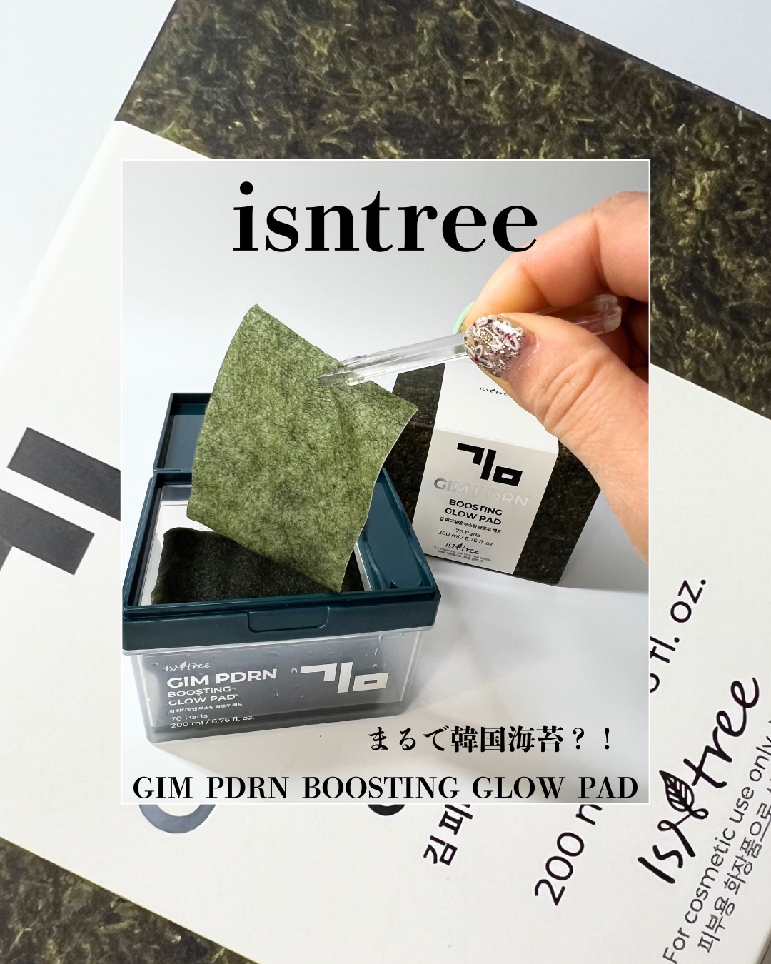 【まるで本物の海苔👀⁉️】isntreeの海苔PDRNパッド💚🌱まるで韓国海苔のようなビジュアルが衝撃的のトナーパッド!海苔(ギム)PDRN(ポリデオキシリボヌクレオチド、保湿成分)配合🌊2in1パッドでメイクノリが良い水光肌を完成してくれる...