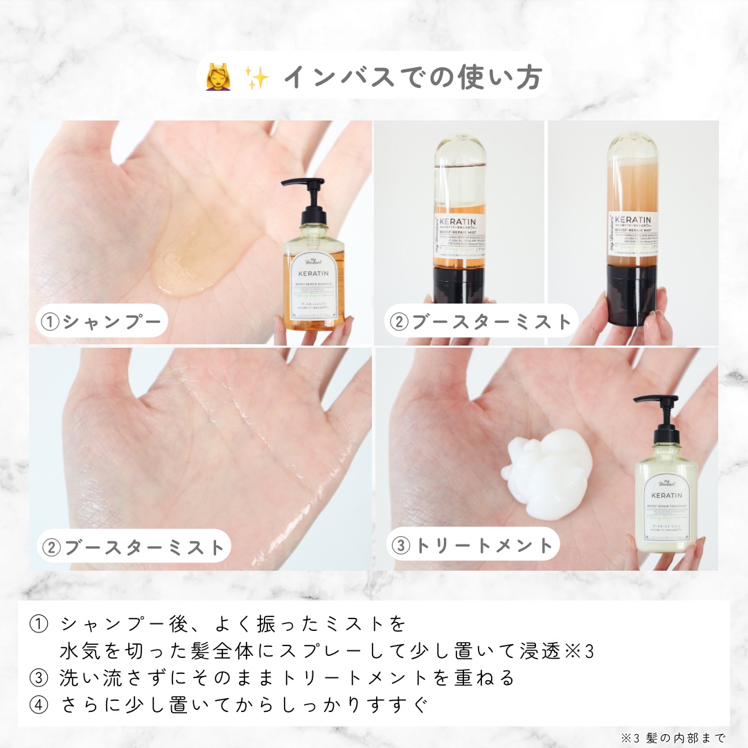 \髪にもスキンケアを。/最近ハマってるのがmyBoostarsのケラチンシリーズ🌿シャンプー後、タオルドライした髪にミストをシュッとするだけ。細かいミストがふわっと広がって、そのあとトリートメントを重ねると、いつもより指通りがなめらかに…🤍4...