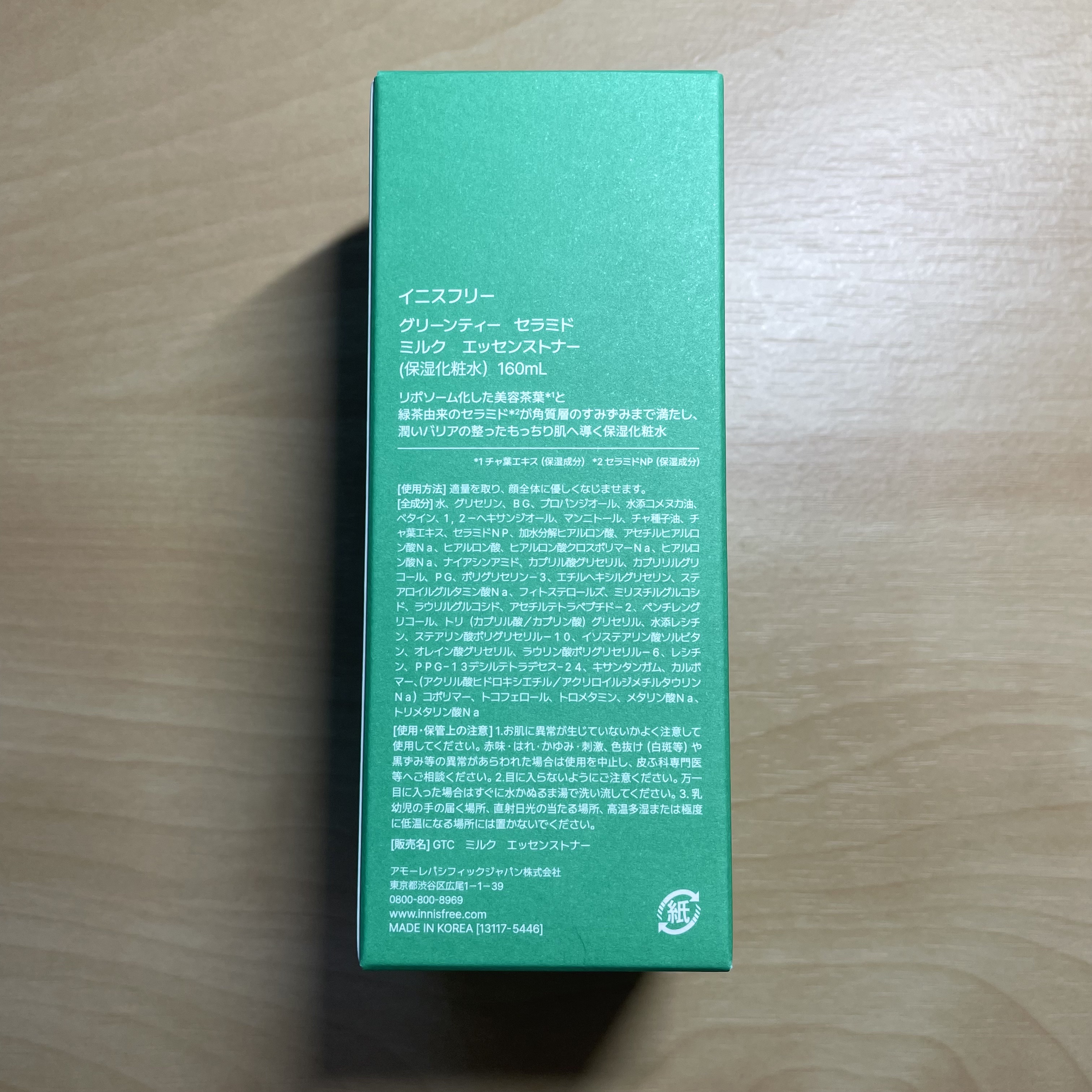 商品詳細情報innisfree グリーンティー セラミド ミルク エッセンストナー