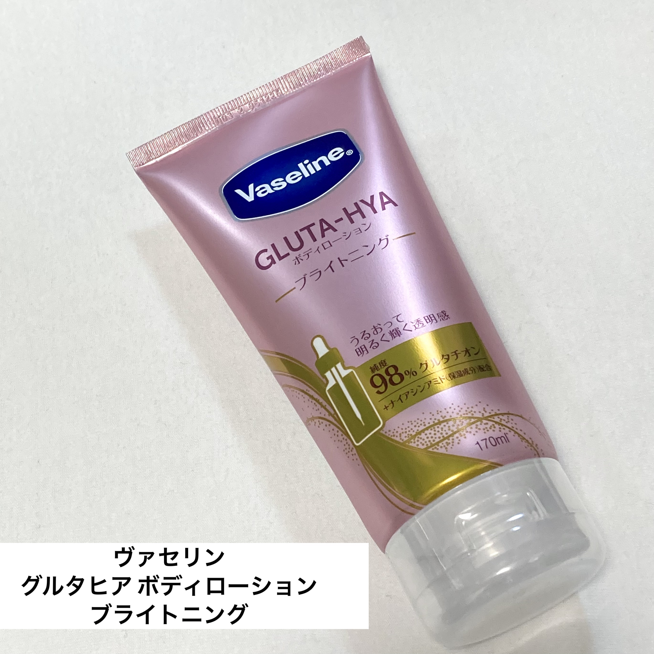 ヴァセリンGLUTA-HYA(グルタヒア)ボディローション ブライトニング海外の方ではすでに発売されてたみたいですね。日本では2月に発売予定。グルタチオン、ヒアルロン酸、ナイアシンアミドなど、こだわりの保湿成分配合。うるおって明るく輝...
