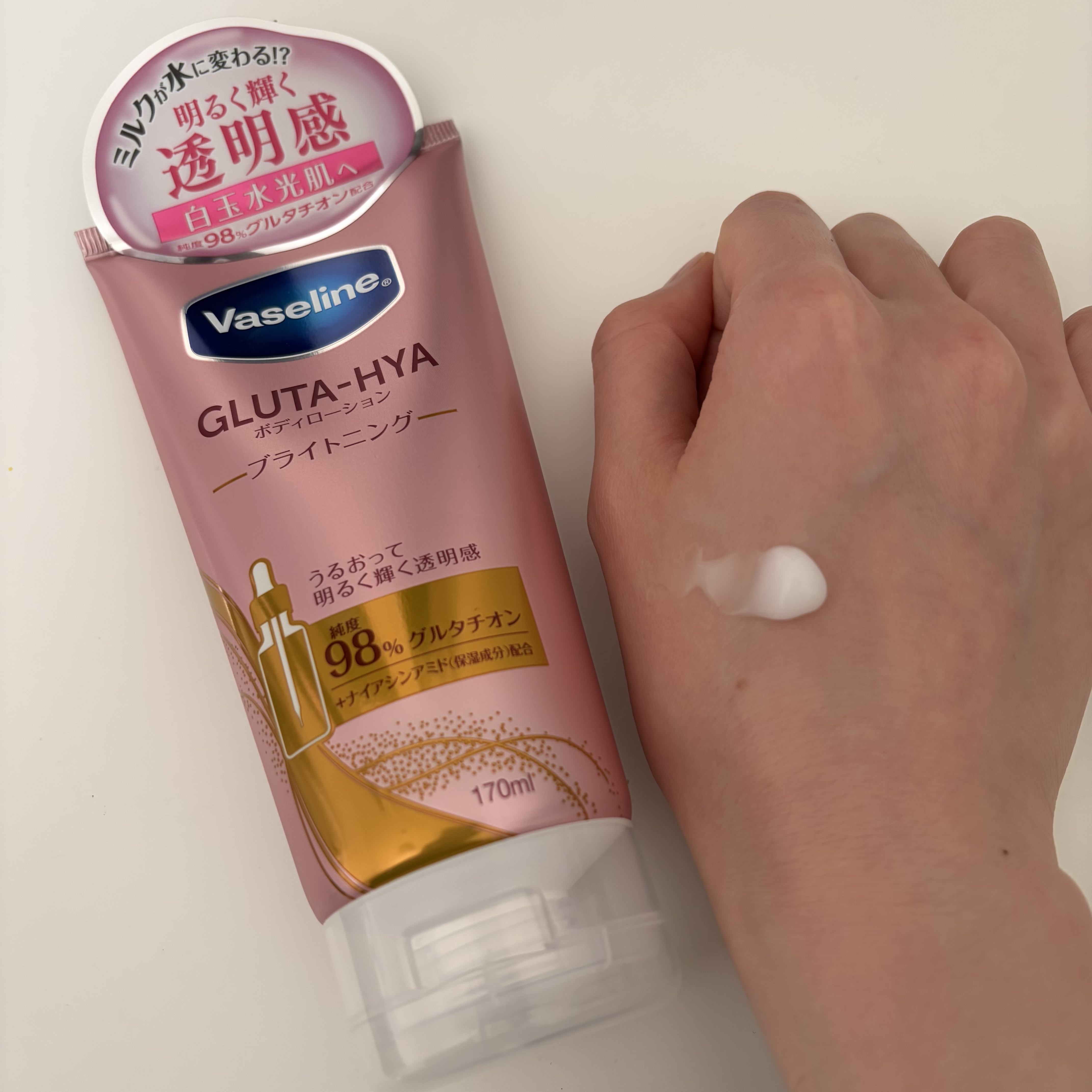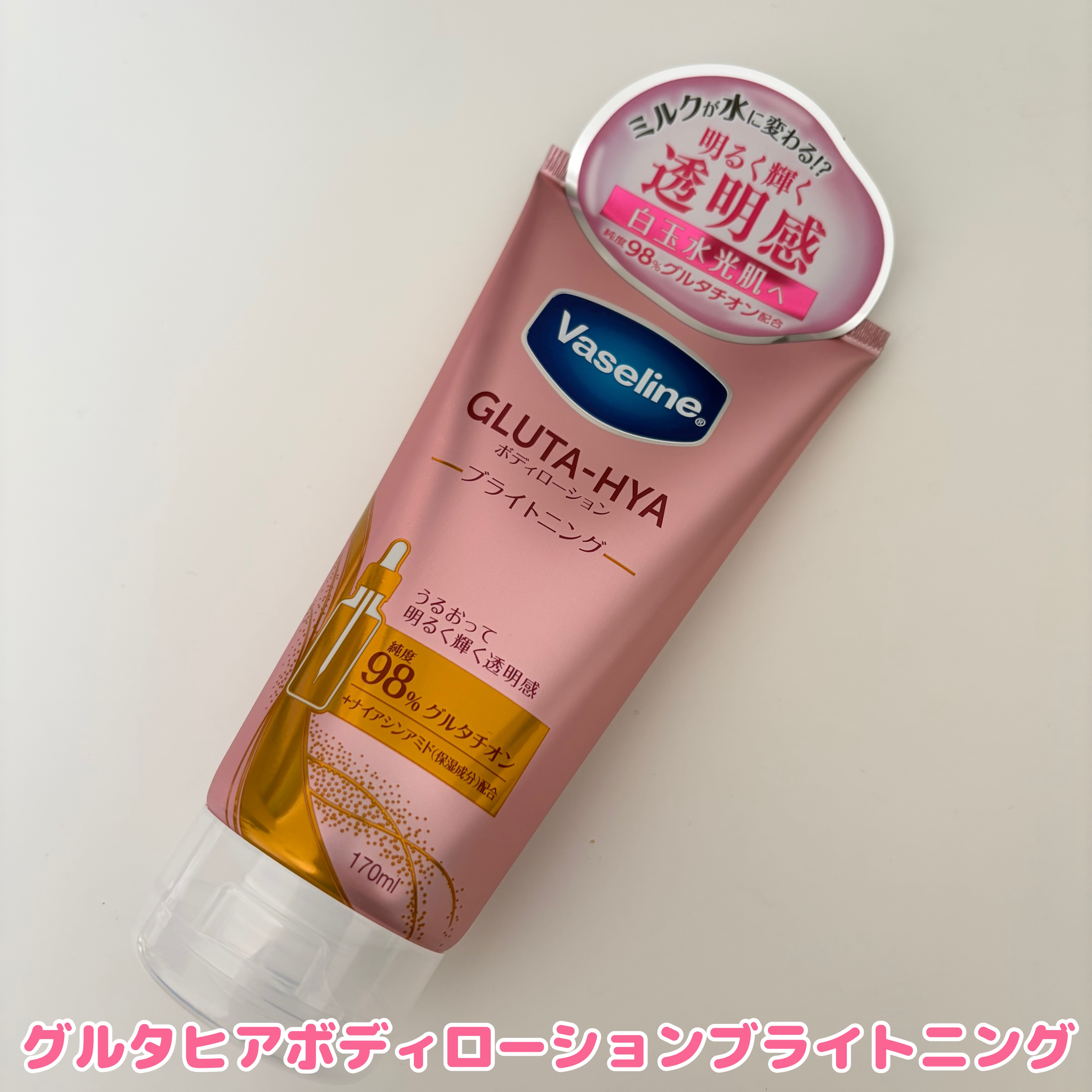 ヴァセリンGLUTA-HYA(グルタヒア)ボディローション ブライトニング海外の方ではすでに発売されてたみたいですね。日本では2月に発売予定。グルタチオン、ヒアルロン酸、ナイアシンアミドなど、こだわりの保湿成分配合。うるおって明るく輝...