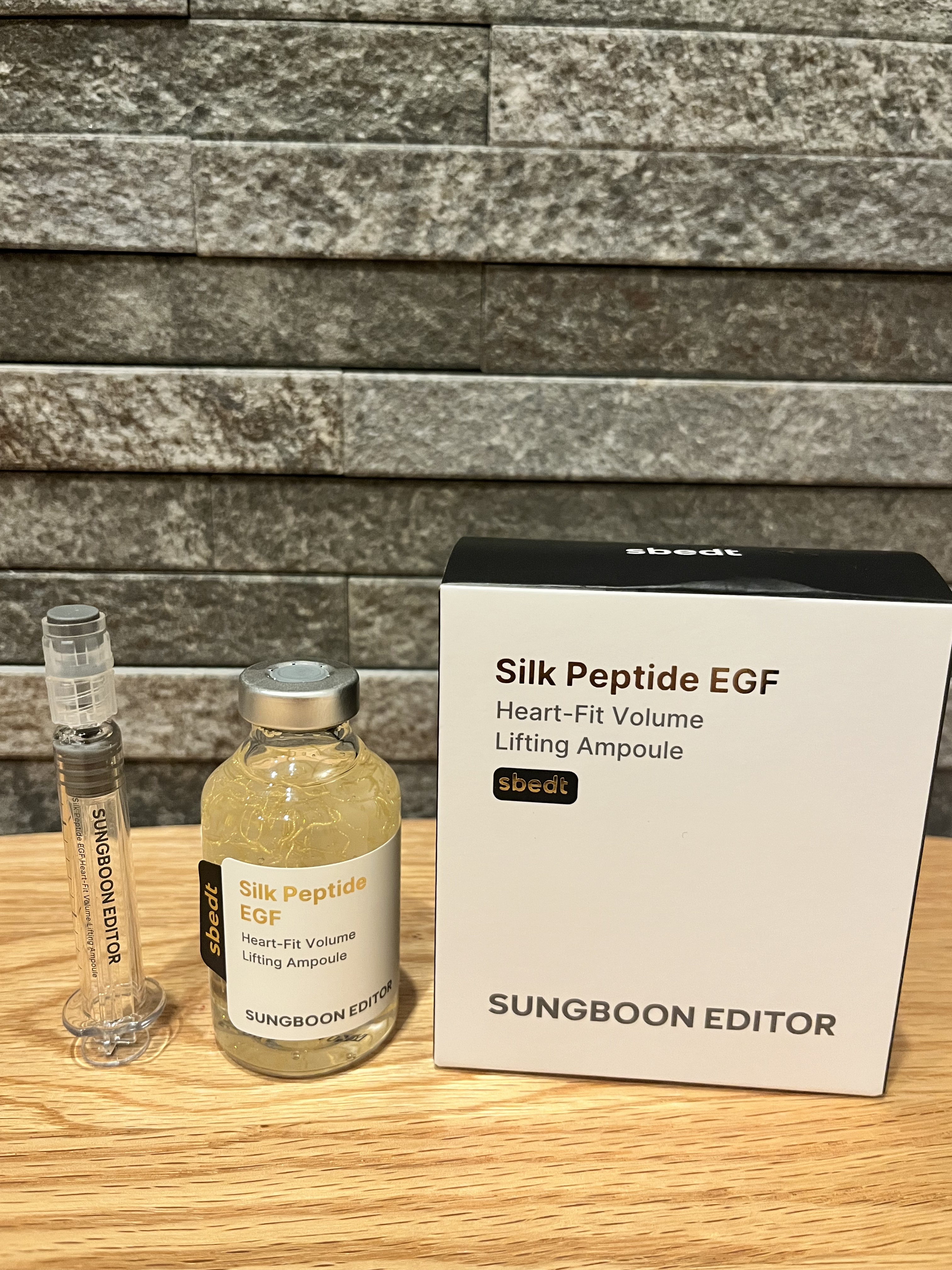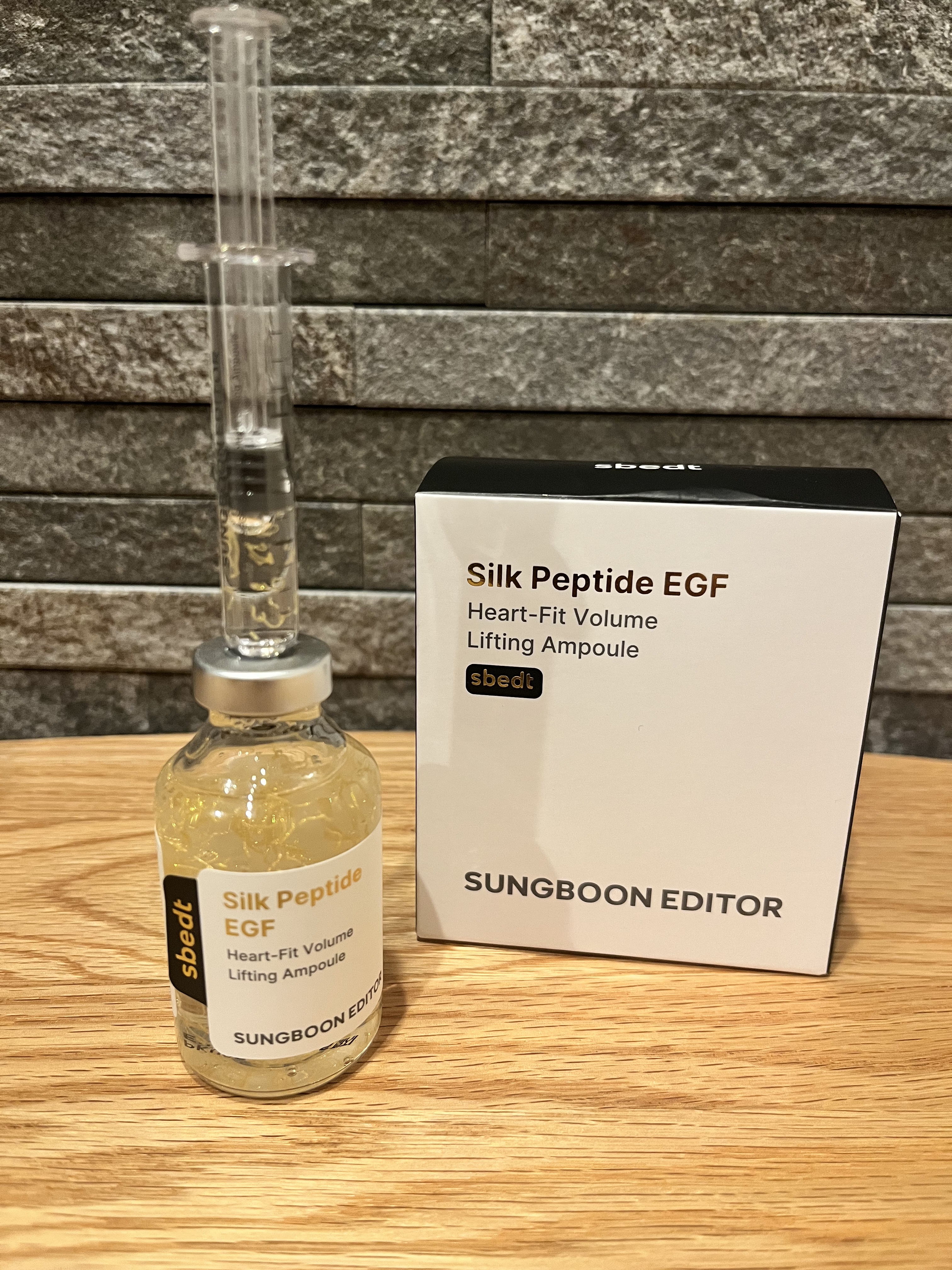 SungBoonEditorシルクペプチドEGFハートフィットボリュームアンプル、シルクペプチドEGFスムージングトナーをお試しさせていただきました。タンパク質を多く含むシルク水で肌の水路を作り、角質層までの浸透力をぐっとUP!金色のコラーゲ...