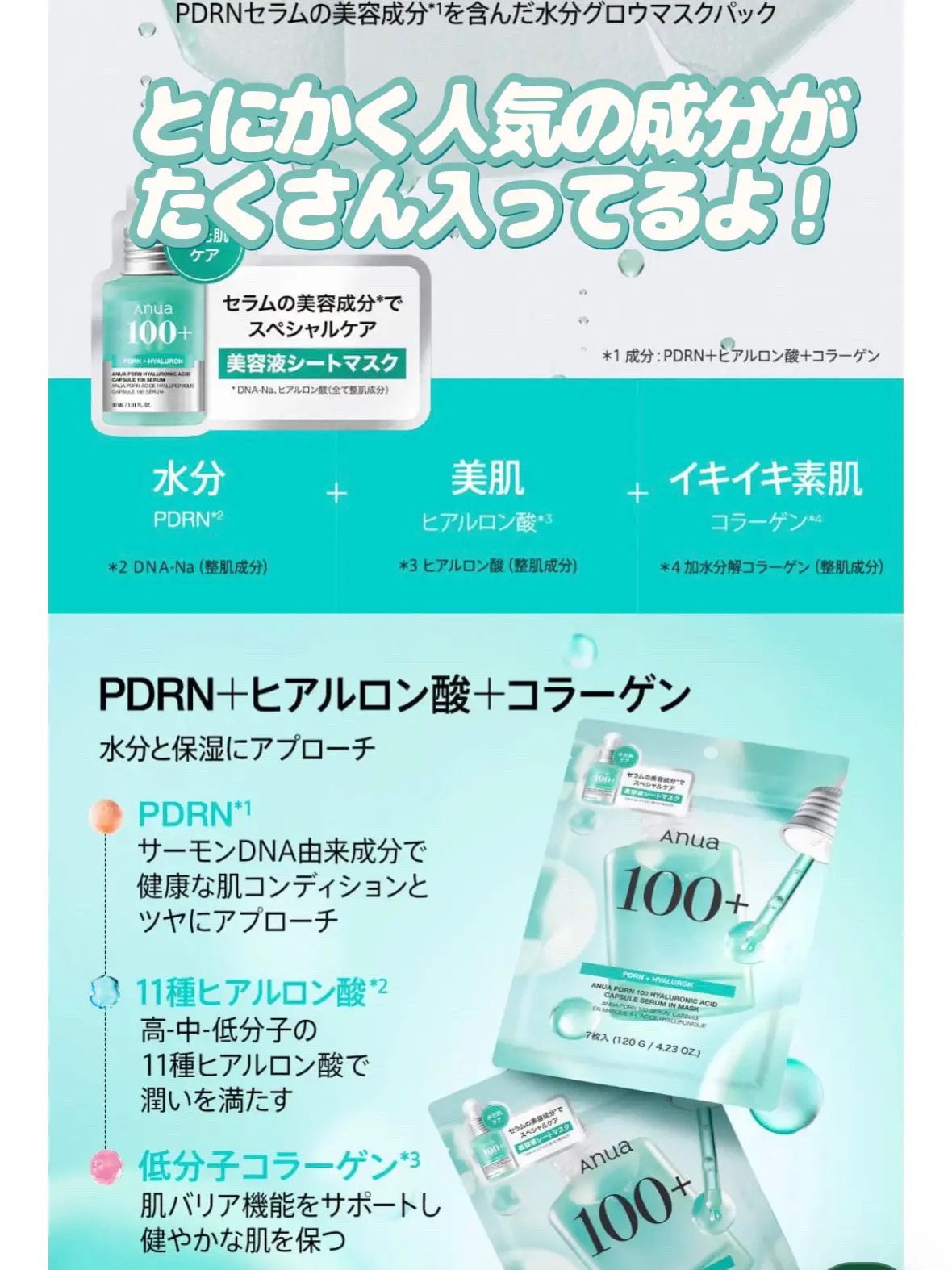 ❥·・▷AnuaPDRN100ヒアルロン酸セラムマスクパック¥770(7枚入)(税込)5/2発売されたばかりの新商品🩵大人気の「PDRNヒアルロン酸100セラム」の美容成分をたっぷり含んだ貼る美容液シートマスクです🫧シートは薄めのゲル状のジェ...