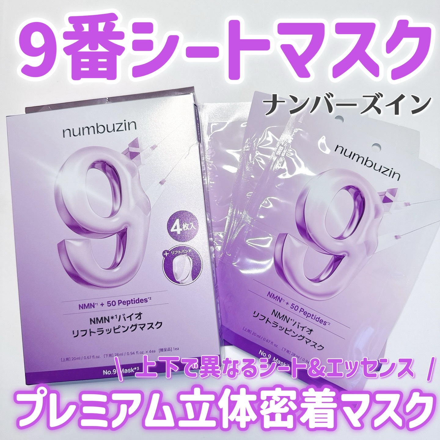 【PR】numbuzinナンバーズインアンバサダー投稿です💜ハリ・弾力ケアでお馴染みの9番ライン✨【9番NMNバイオリフトラッピングマスク】ハリと弾力を一気に仕込んでむくみゼロシートマスク!!上用シート:毛穴・弾力ケアができる純度98%のNM...