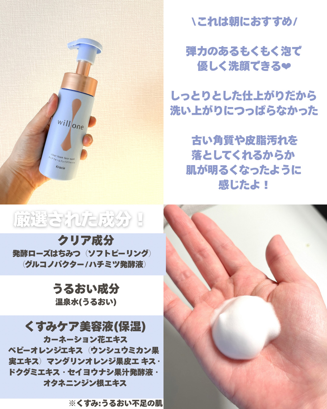 willoneクリアフォームフェイスウォッシュ《willoneシリーズの特徴》メイクや汚れを“落とす時間”を“美容液を与える時間”に変える新発想で、複雑な「大人のくすみ」をまとめてケアする”くすみ美容液導入型”クレンジング・洗顔シリーズとのこ...