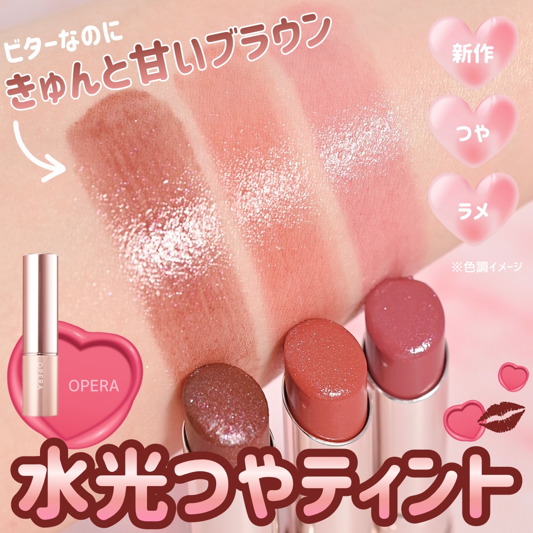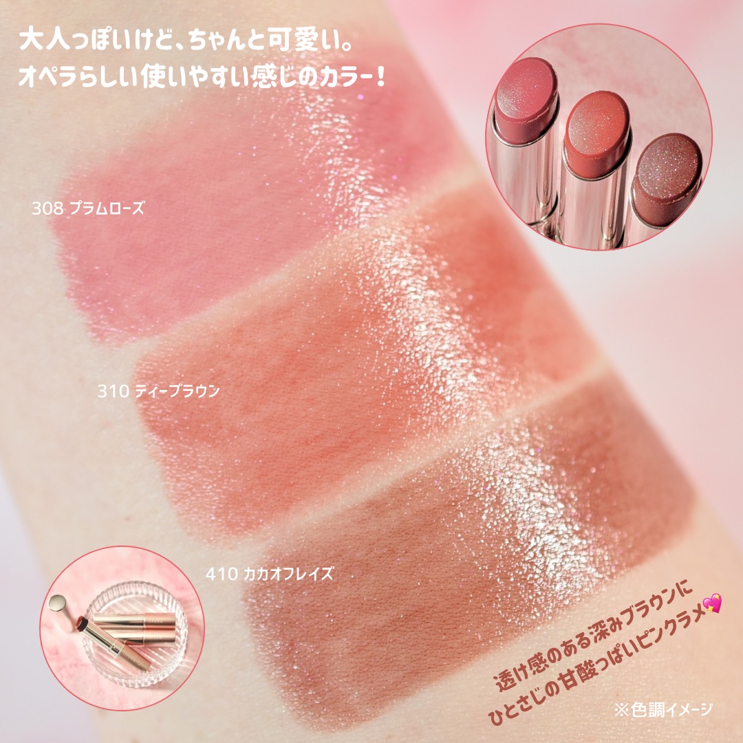 .オペラのティントのバレンタイン限定色410カカオフレイズはピンクラメが入ったチョコレートブラウン🍫🍓フリーズドライのいちごが散りばめられたチョコみたいでかわいすぎませんか…!オペラのリップってかわいらしい感じの色が多いイメージだったけどこれ...