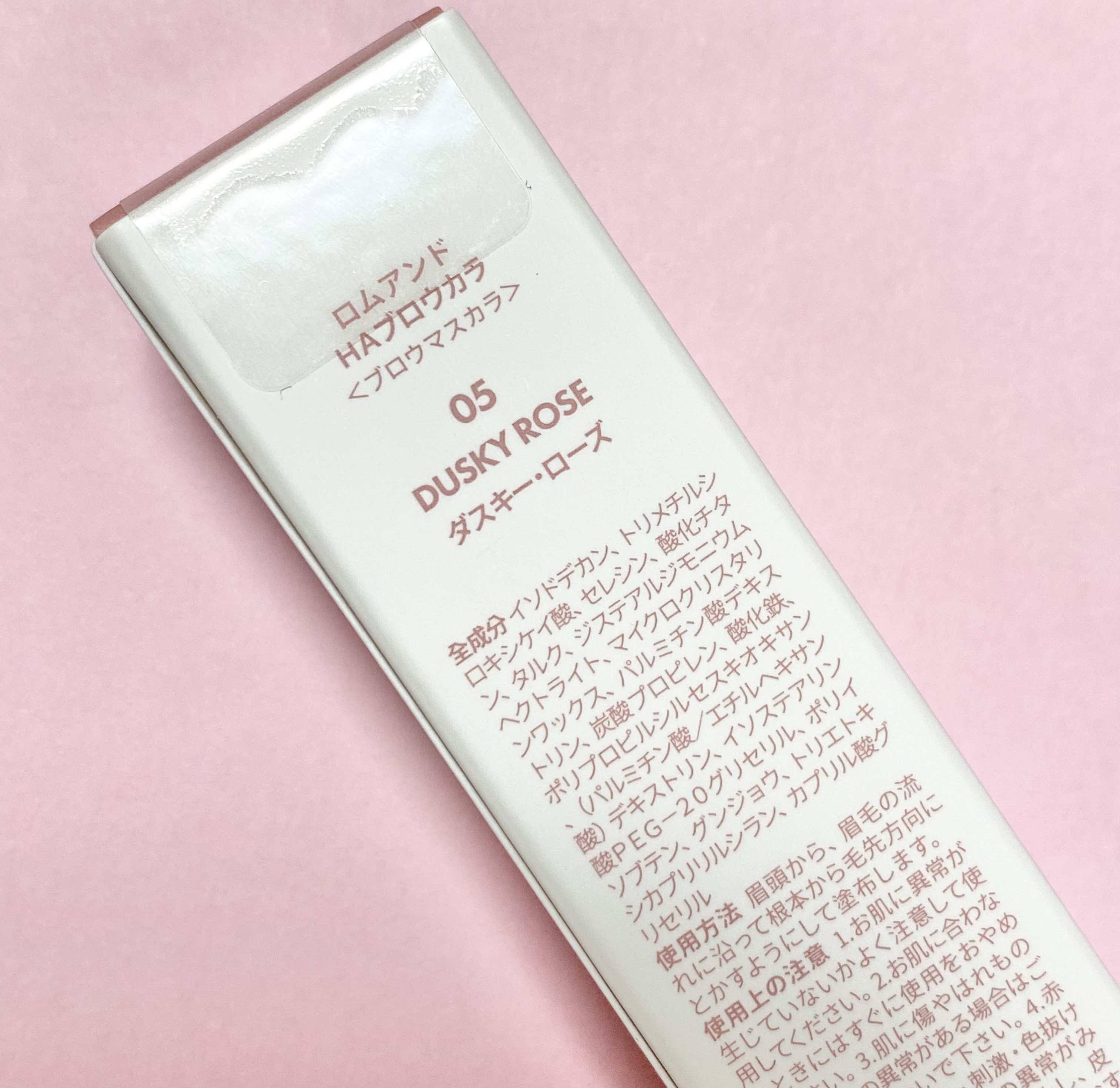 rom&ndハンオールブロウカラ05ダスキー・ローズミニミニサイズで可愛いPlaza825円で購入色は、ほのかなピンクローズベージュ自然な薄眉になるブラシは固めで少し斜めになっている(普通サイズは真っ直ぐだけどね)塗りやすいしだまにもならず良...