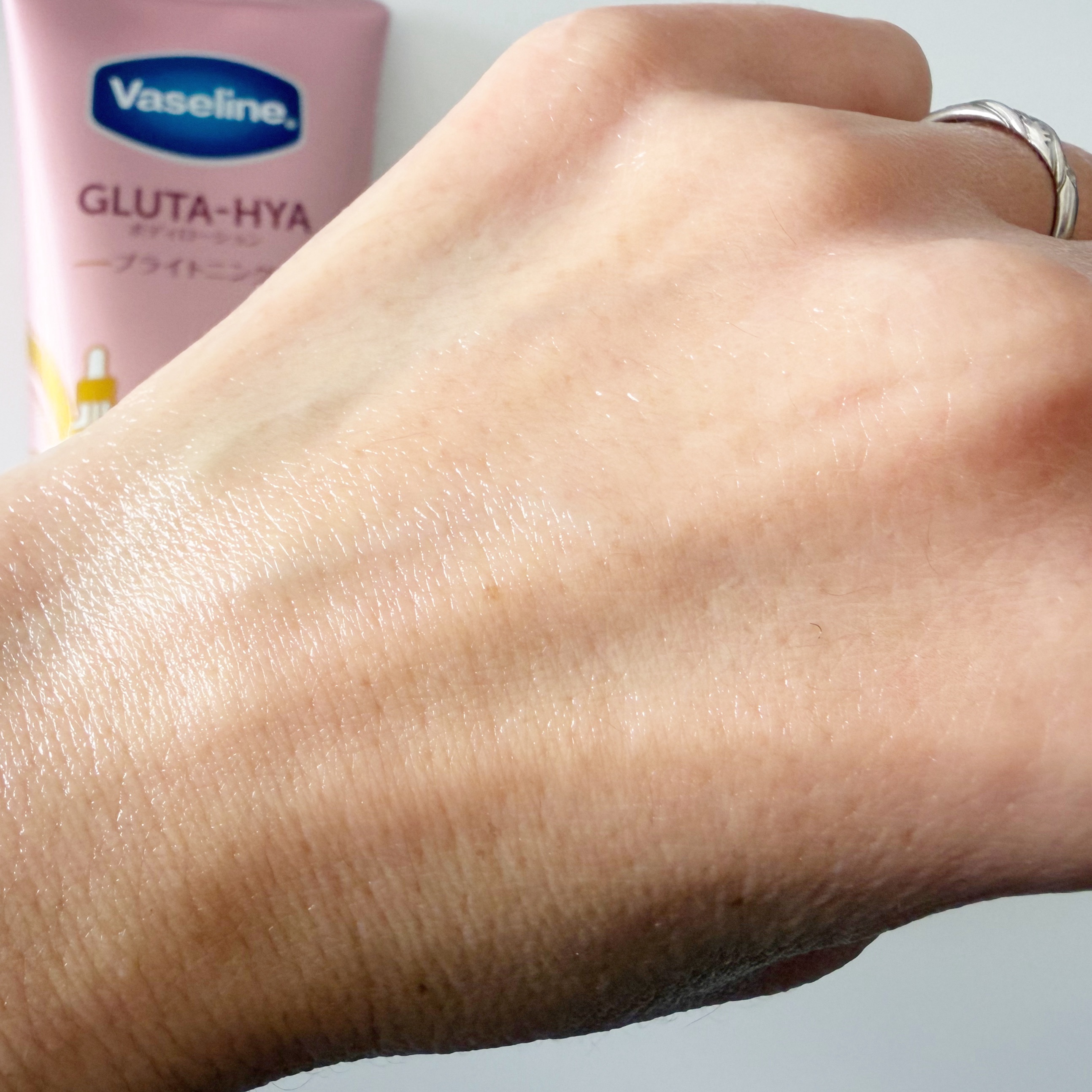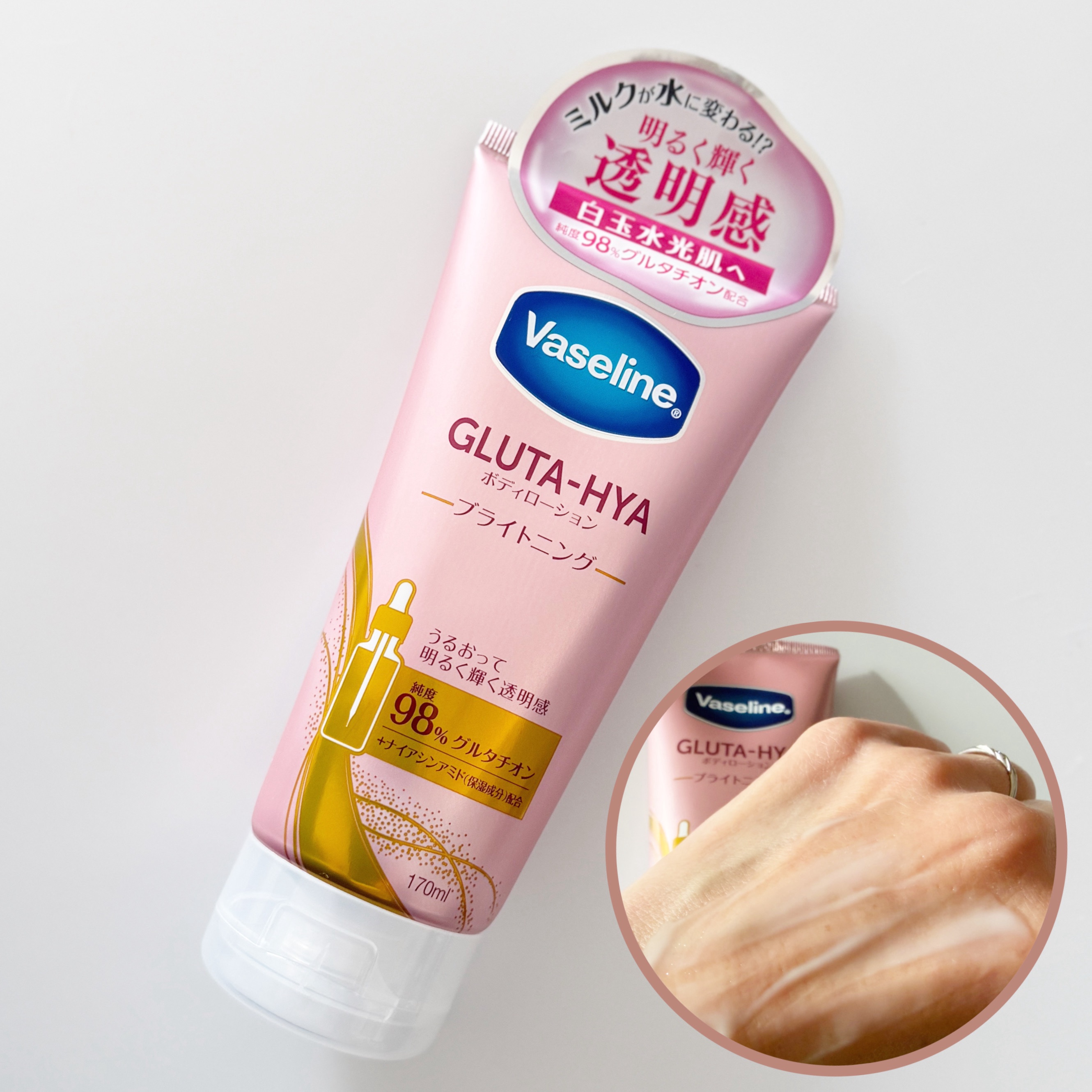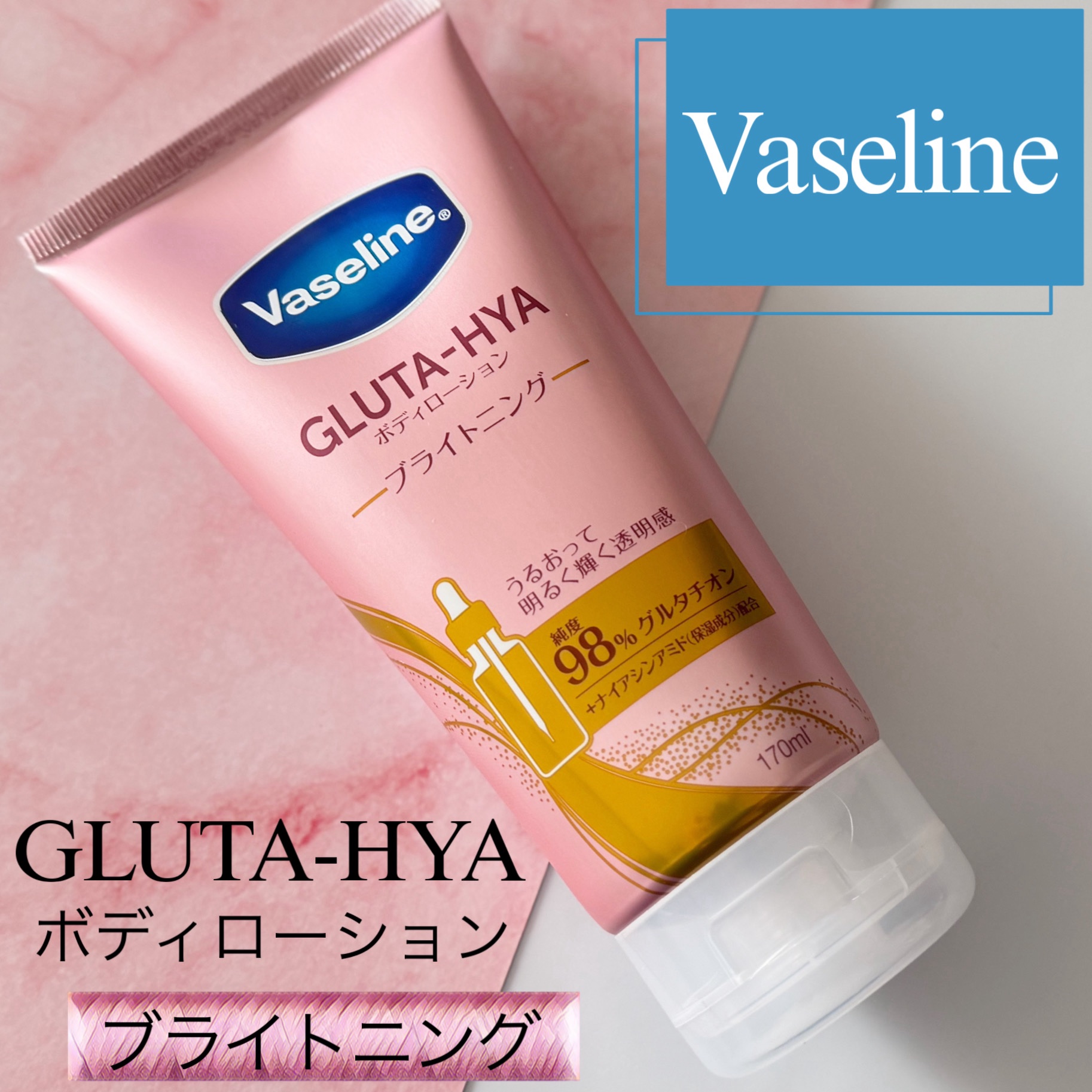 ヴァセリンGLUTA-HYA(グルタヒア)ボディローション ブライトニング純度98%グルタチオン配合のボディローションジェルクリームのようなテクスチャー手に取り出した時はボディローションよりボディ乳液に近い印象でしたでも伸ばしてみる...
