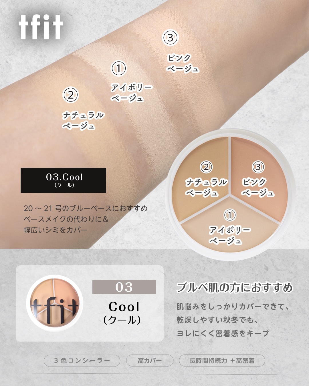 TFIT(@TFIT_JP)【カバーアッププロコンシーラー】01.Neutral(ニュートラル)イエベ・ブルベを問わず全ての肌の方に️🩵コンシーラー初心者さんにも🫶🔶長時間キープ可能/高カバー3色コンシーラー・シェーディングやハイライトにも使...