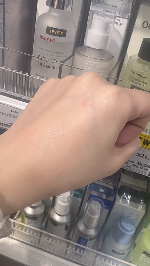 | 少しとろみがあるけど肌に出すとすーっと垂落ちてくるくらいのゆるめのテクスチャーで、のびが良い! | 詳細を見る | ||