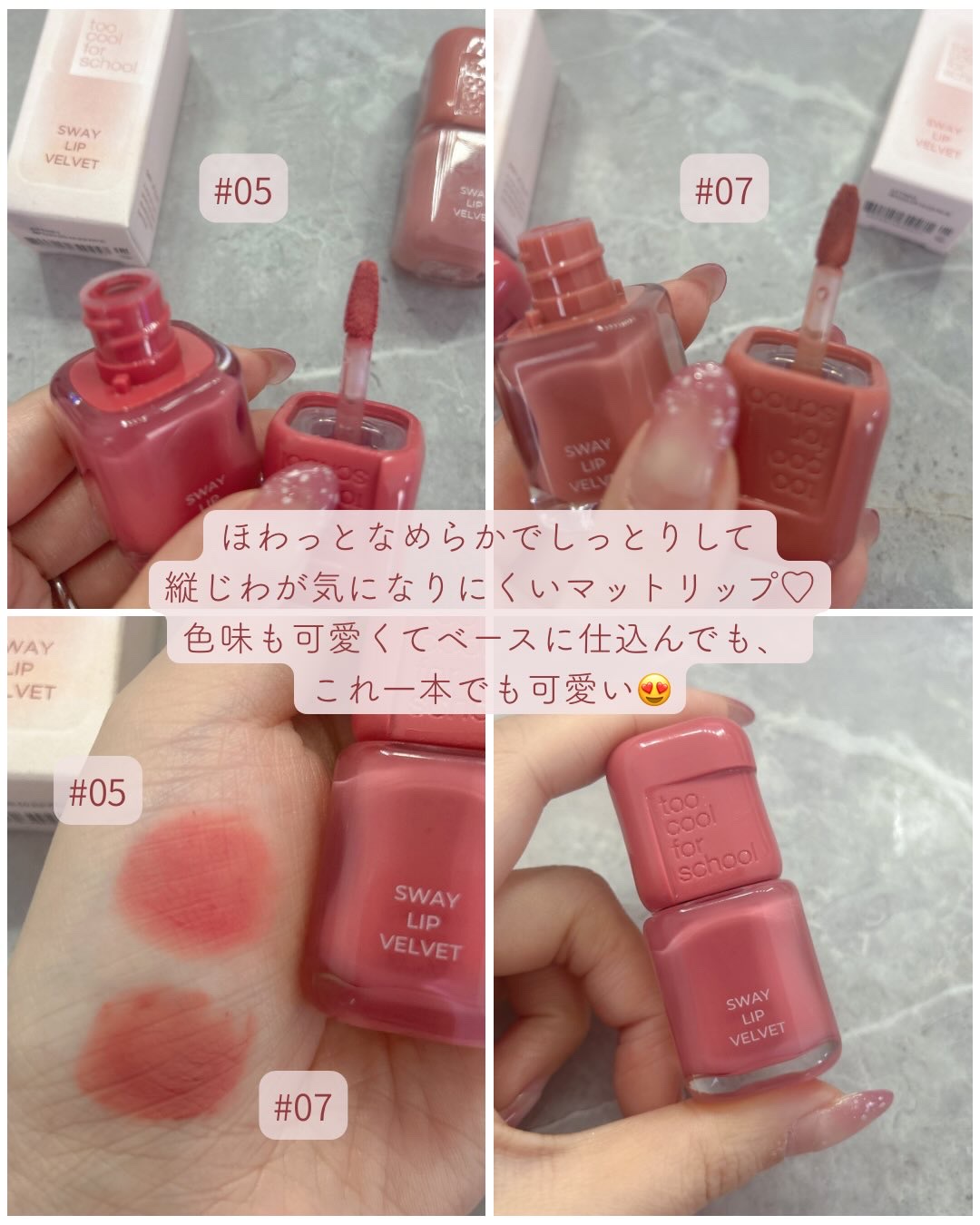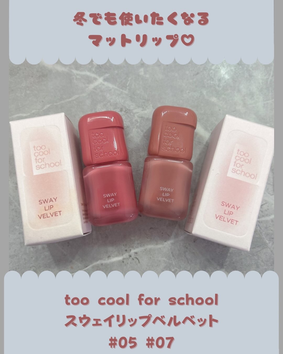 こんにちはꕤ︎︎·͜·いつもご覧頂きありがとうございます✨️感謝です︎。@toocoolforschool_official_jp#スウェイリップベルベット05…ROSYOAT07…MUTEDCHERRY以下引用有り🙇♀️・べたつくオイル...