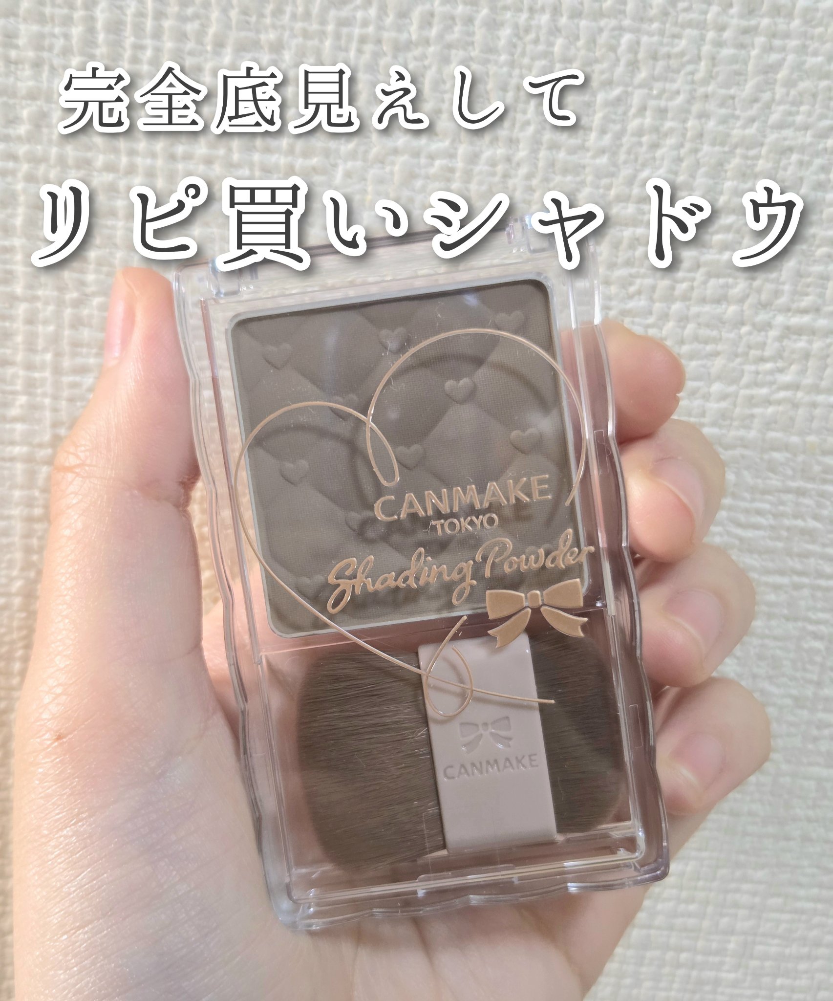 コスパ最強シェーディングʕ•ᴥ•ʔ 今日レビューするのは、キャンメイクのシェーディングパウダー04アイスグレーブラウンです! こちらのシェーディングはブルベカラーのシェーディングで、黄味感がほとんどなく、ブルべ夏の私の肌にはとてもなじんでくれました^ㅠ ̫ ㅠ^♡ 特に粉飛びをすることもなく、色が付きすぎることもないので初心者の方でも使いやすいかなという印象ですÒ ·̫ Ó