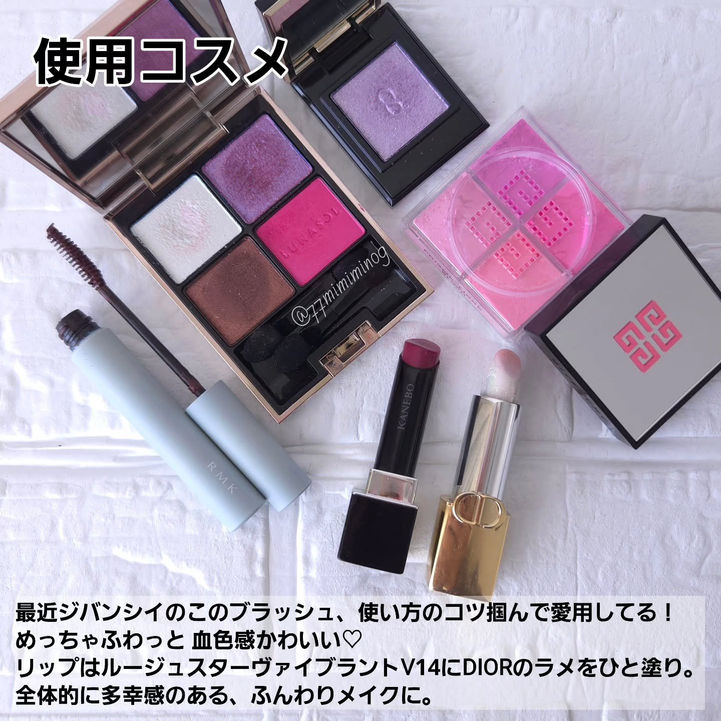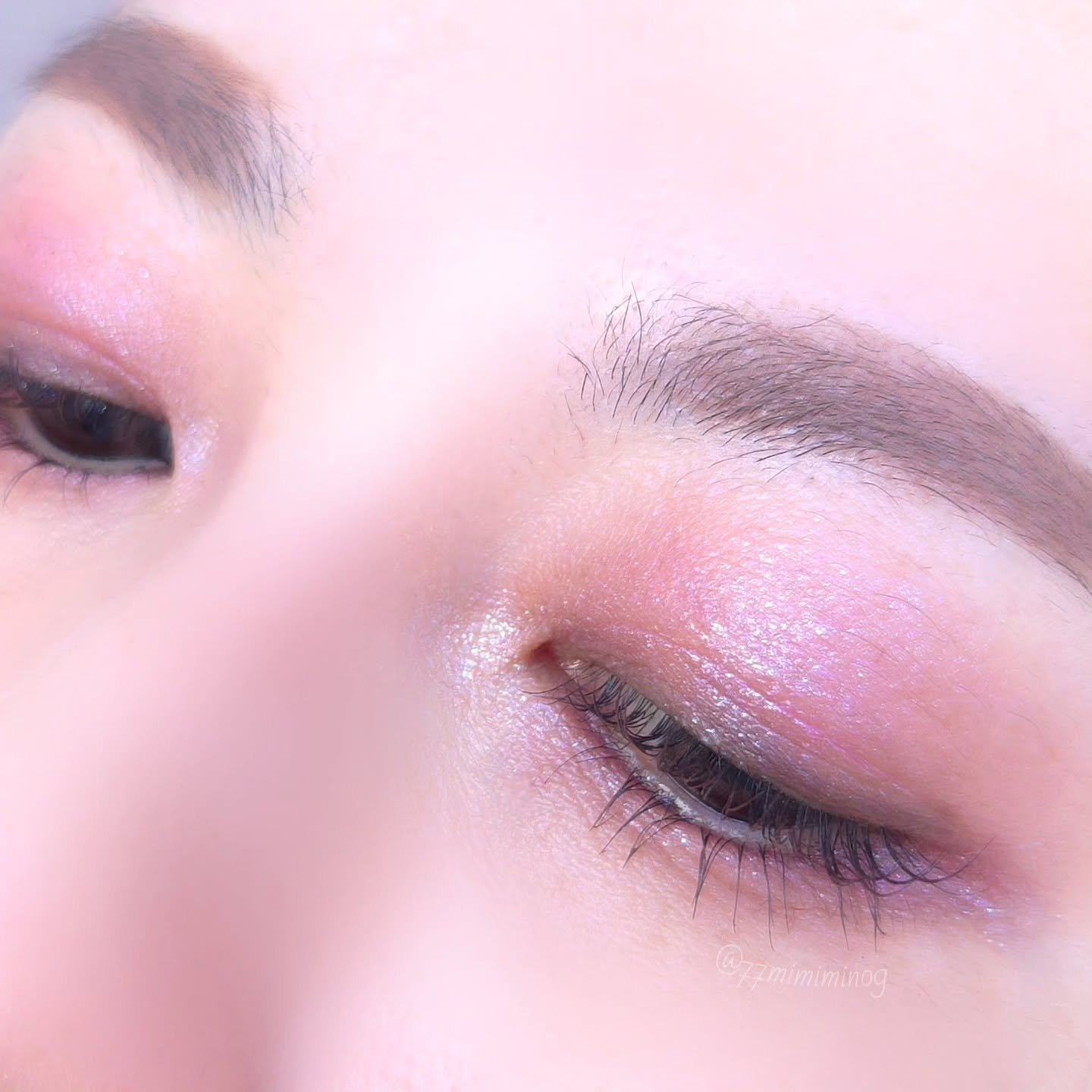 RMKのアイシャドウはこれがデビュー。こんなんブルベホイホイじゃん…。かわいすぎて即予約電話したわ🫠🩷 青みピンクに透明感爆発パープルにキラキララメ。締め色はグレージュっぽいブラウン。ブルベ大歓喜。 発色は調整しやすい。ピンクも見た目はビビッドだけど、ふんわり色づくので、好みの濃さにできるよ。