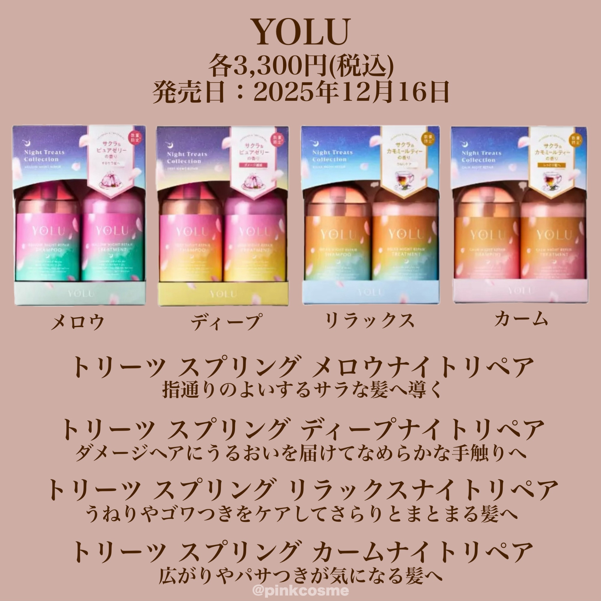 YOLU サクラ リラックスナイトリペアシャンプー/トリートメント | 1,540円 |