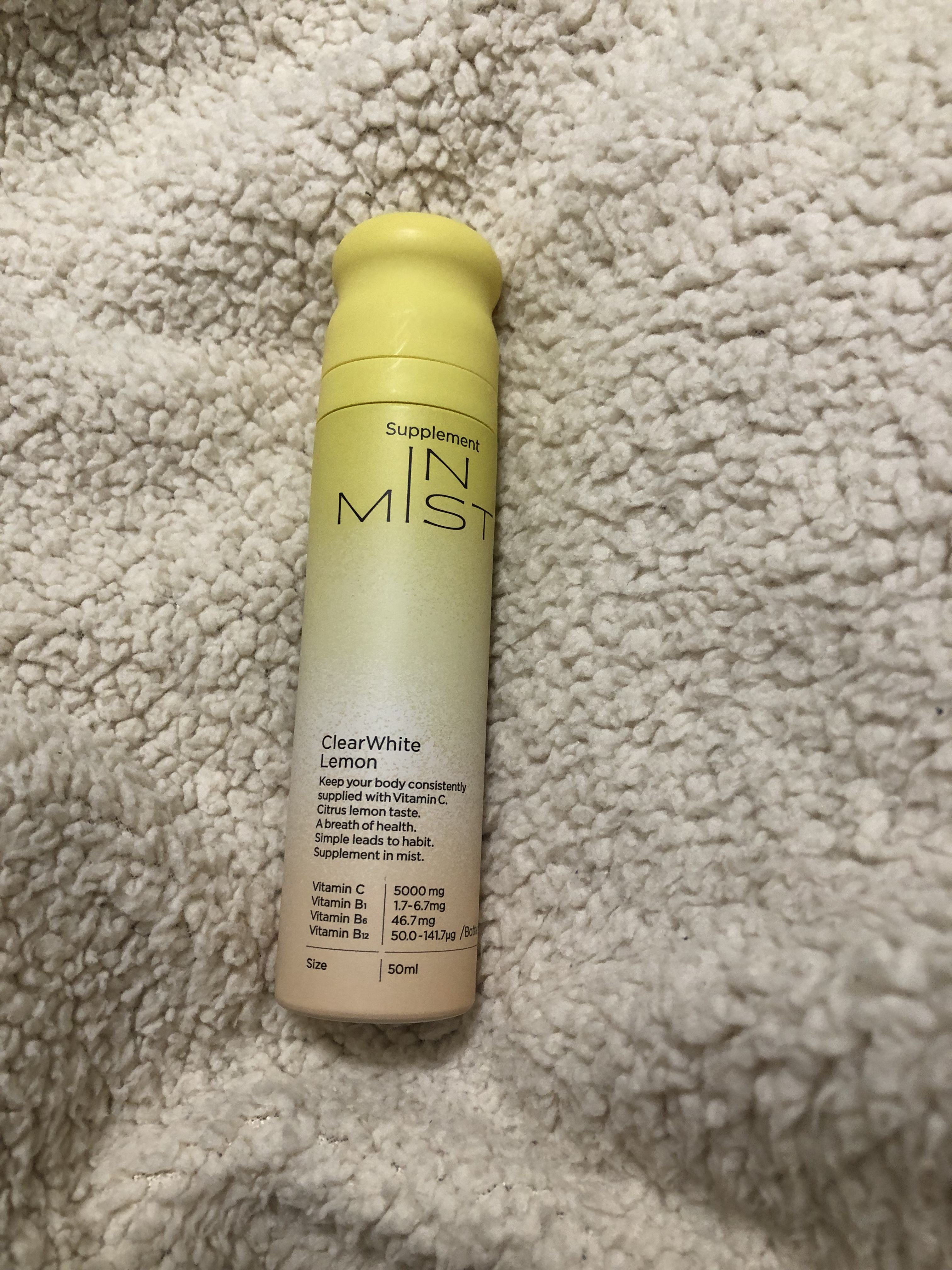 INMISTクリアホワイトレモンワンプッシュでビタミンが美味しく補給できるミストタイプのサプリメントミストタイプで接種しやすくて勢いがいいので意外と量がでます✧˙⁎⋆結構酸っぱいですがクセになる味で錠剤が苦手な方はおすすめです✨🍋#インミスト...