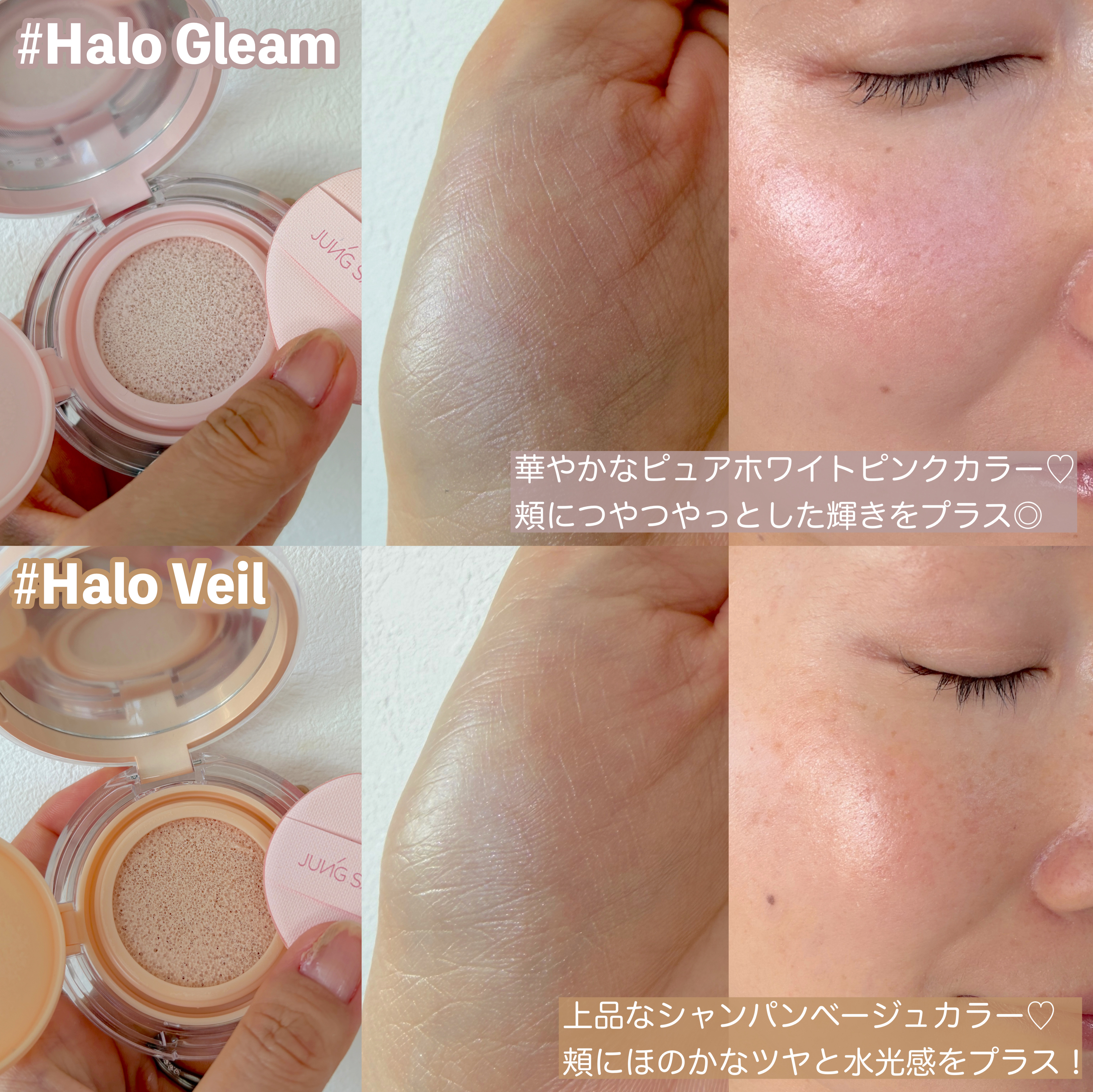 ジョンセンムルアーティストクッションハイライター4g⚫︎HaloVeilイエベ/ニュートラル⚫︎HaloGleamブルベ/ニュートラルクッションタイプのハイライトは初めて使ってみました✨パフでつけるのでめっちゃギラギラしたらどうしようと思いま...