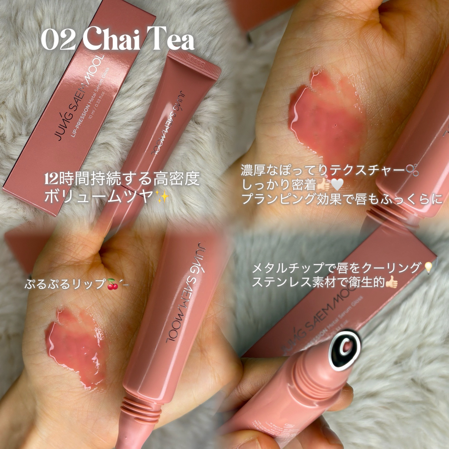 @jsmbeauty_official_jpジョンセンムル✦リッププレッションメタルセラムグロス1COAT⇒2COATでぷるぷるリップ💋メタルアプリケーターで唇の温度を下げカラー持ちや荒れてた唇でも優しくリップラインまで滑らかにタッチ💄しっと...