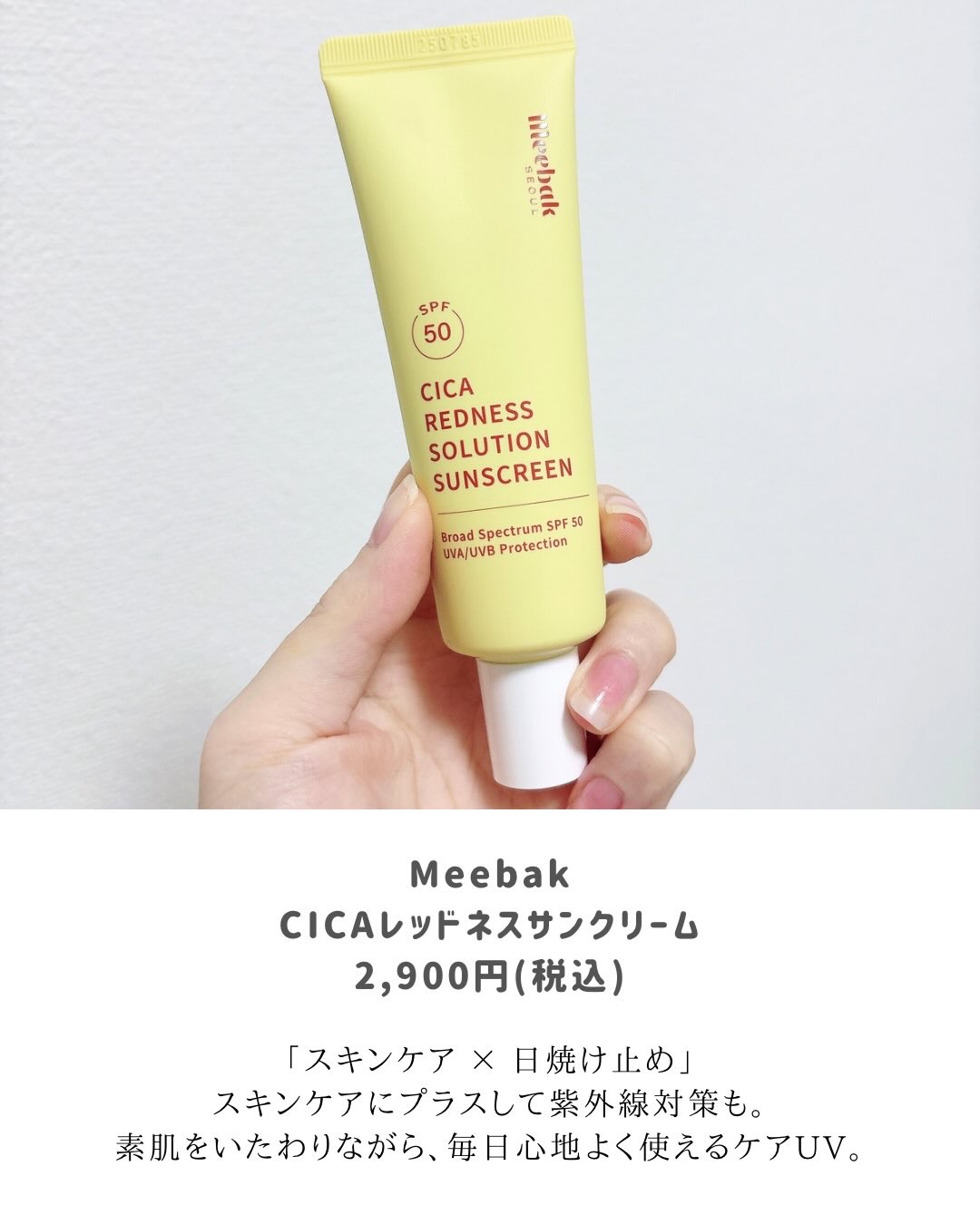 @meebak.jp様✨CICAレッドネスサンクリーム✨(SPF50+)スキンケアも日焼け止めも叶えたい!そんなこれからの紫外線対策に🌴グリーンカラーが肌になじみやすく気になるお肌ムラを自然にカバーしてくれて明るく魅せてくれます☺グリーンカラ...