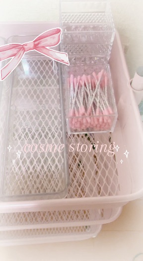 ニトリダイソーで綺麗に収納✨️この組み合わせよき︎👍🏻̖́-空いてるところにはパック置いてます💧ニトリのワゴンは、ネット限定カラーのローズです。#コスメ収納...