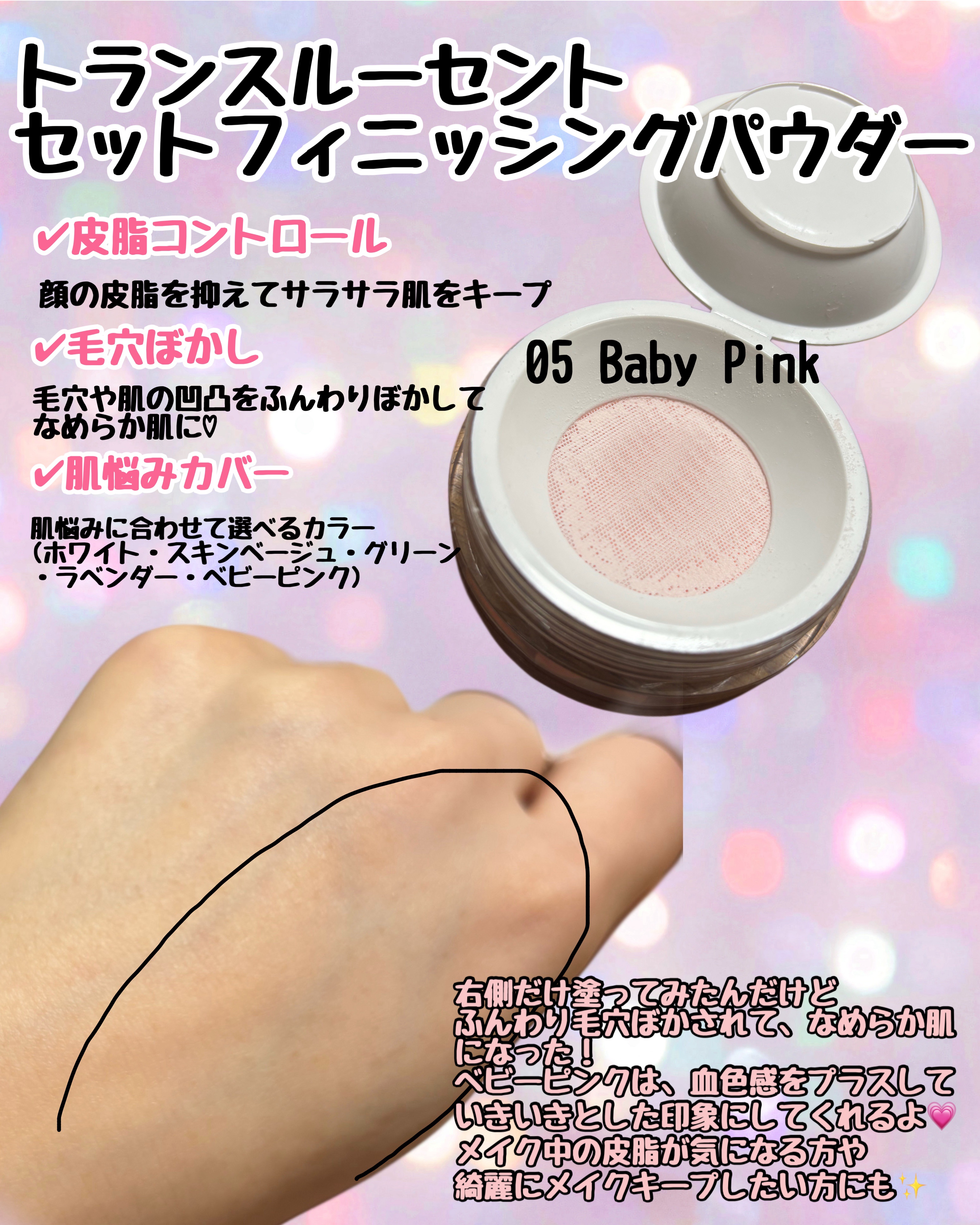 TFITトランスルーセントセットフィニッシングパウダー05ベビーピンクさらっさらの皮脂コントロールパウダー毛穴をふんわりぼかしてフィルター肌へ長時間さらさらをキープしてくれるから、絶対崩したくない日におすすめ😳肌悩みをカバーできるカラー展開で...